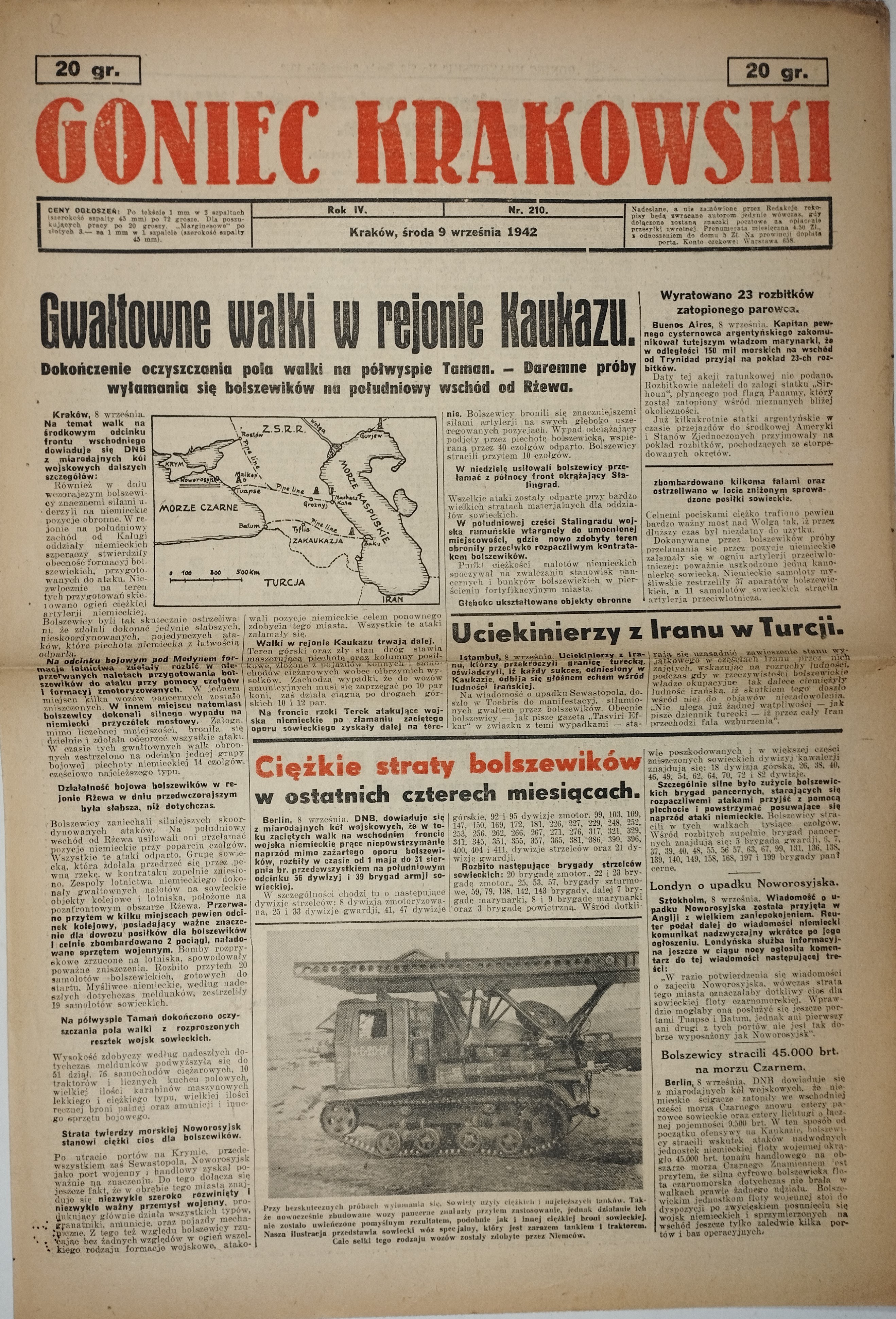 Wydawnictwo "Goniec Krakowski", Kraków. Folio, s. 4. Ślady złożenia, poza tym stan dobry.