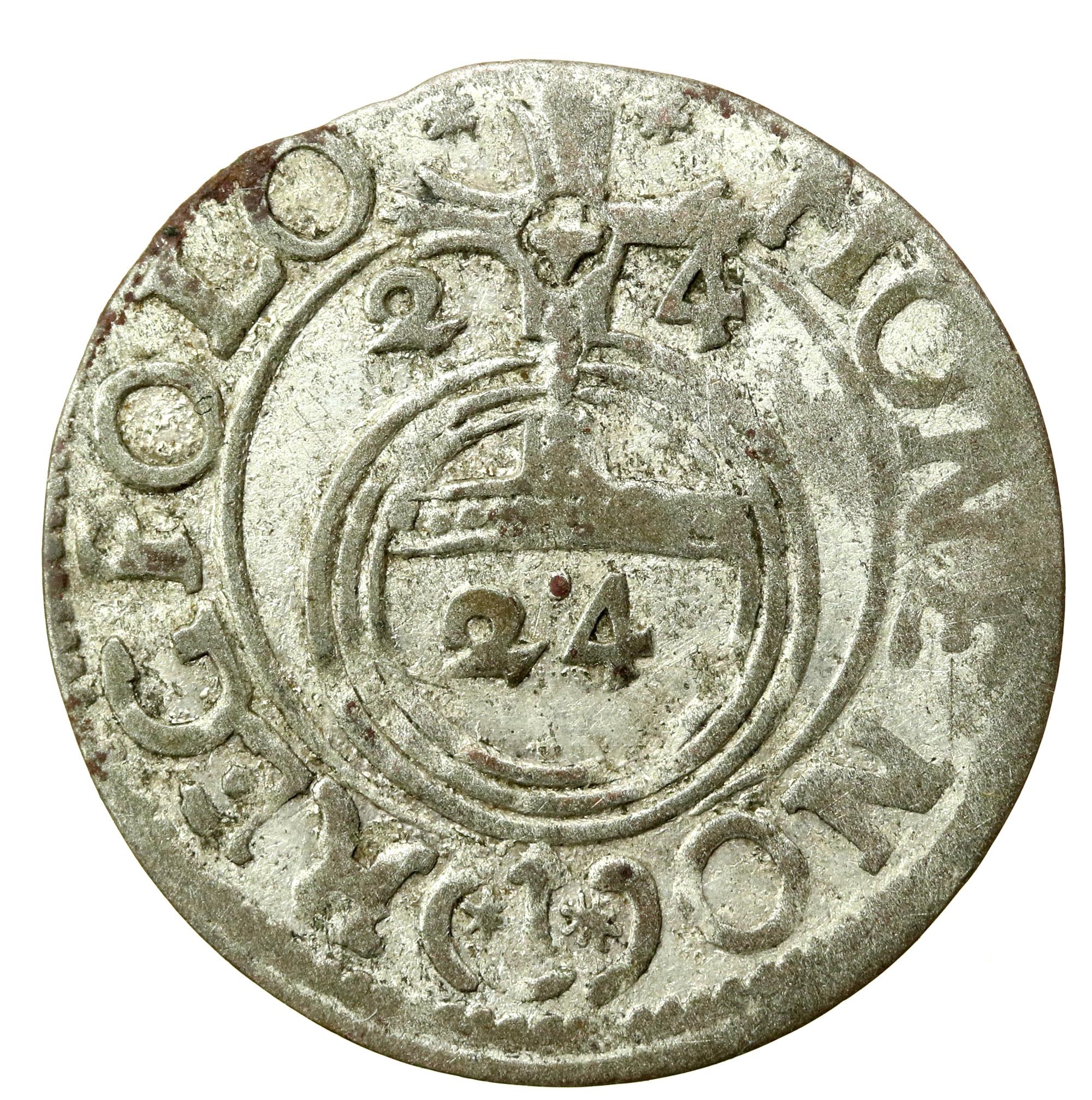 Zygmunt III Waza, Półtorak 1625, naśladownictwo - ilustrowany w katalogu. Egzemplarz ilustrowany w Katalogu monet 1/24 talara z XVII wieku bitych na terytorium Rzeczypospolitej i terytoriach powiązanych u Nieczitajło i Zamiechowski pod numerem 1082