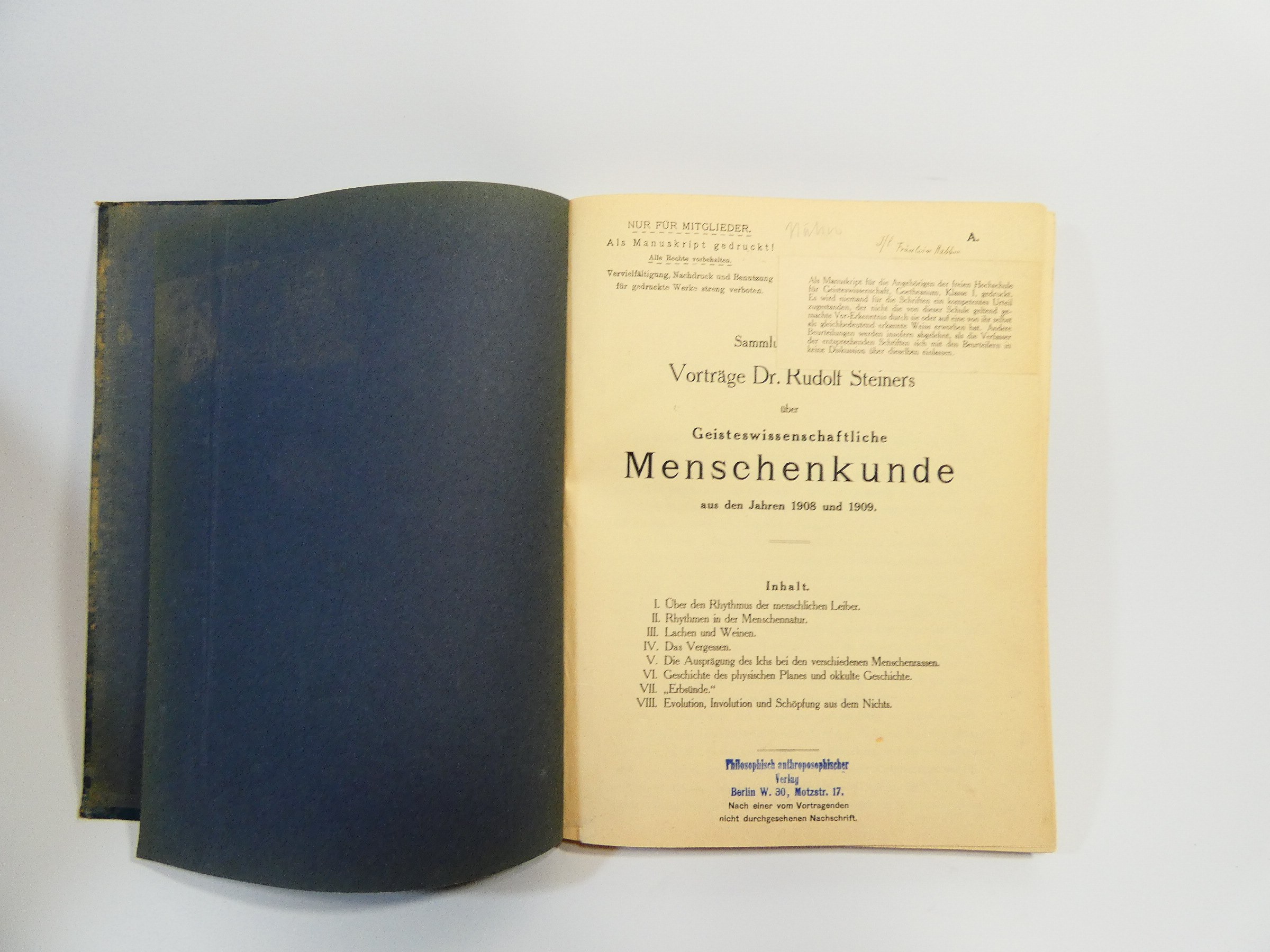 manuskrypt Rudolf Steiner Geisteswissenschaftliche menschenkunde