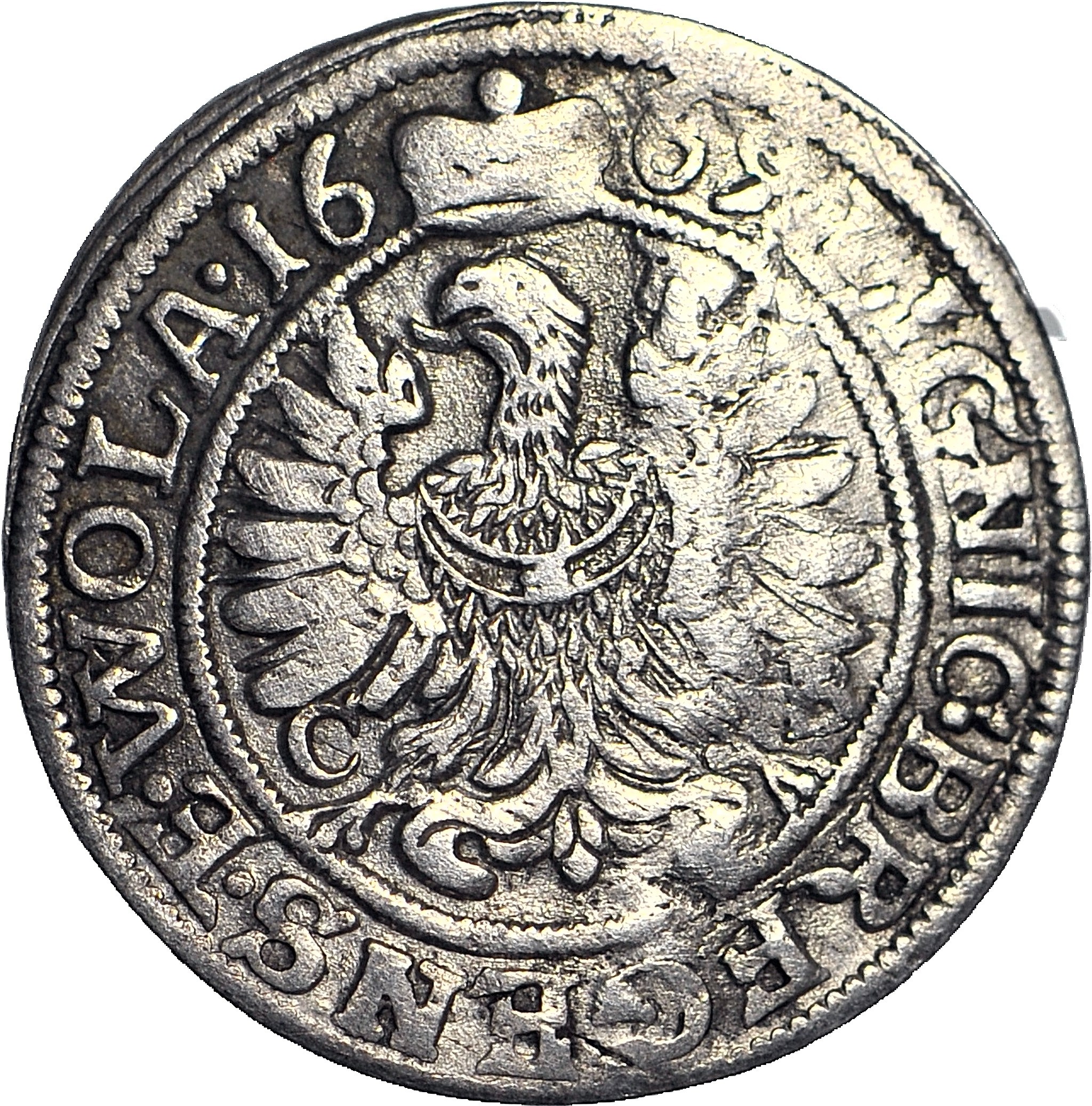 3 krajcary Chrystiana z 1669 roku. Powrót do bicia nominału 3 krajcary w 1668 roku i latach 1669-1670, wiąże się z całkowicie odmienną ikonografią wyobrażenia portretu księcia na awersie oraz orła z mitrą kończącą legendę otokową (zamiast rozety lub znaku interpunkcyjnego) na rewersie, co ma związek ze zmianą mincmistrza, którym od 1666 roku jest Christoph Bretschneider (C-B). Zarówno na awersie jak i rewersie punca litery N jest nabita błędnie (lustrzanie). Odmiana z końcówką WOLA i ligaturą ET na rewersie