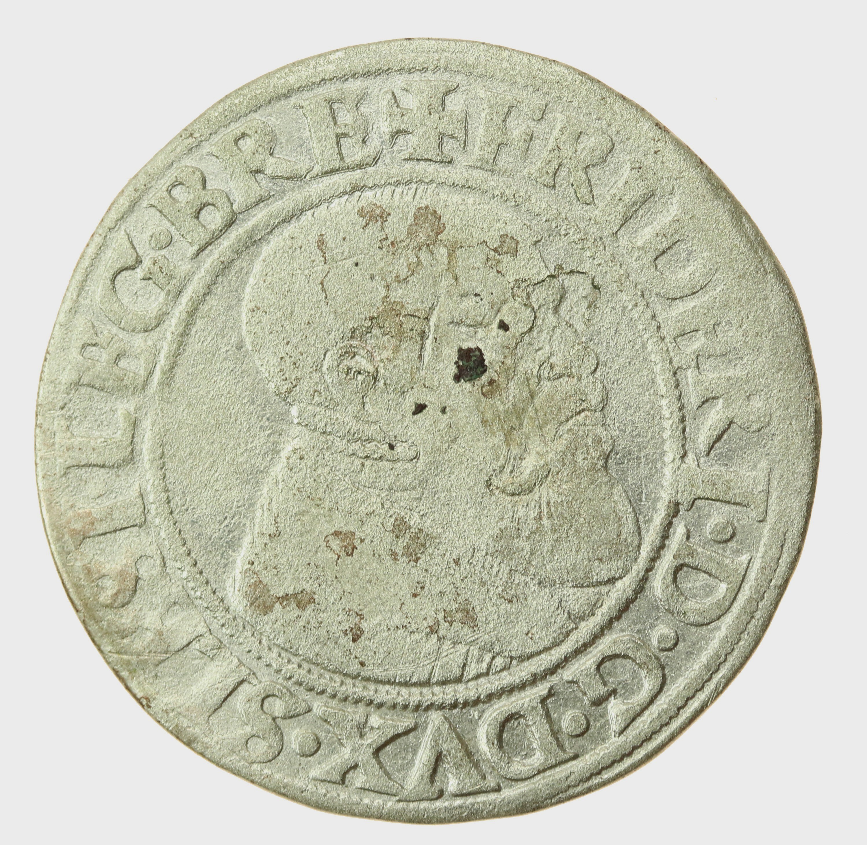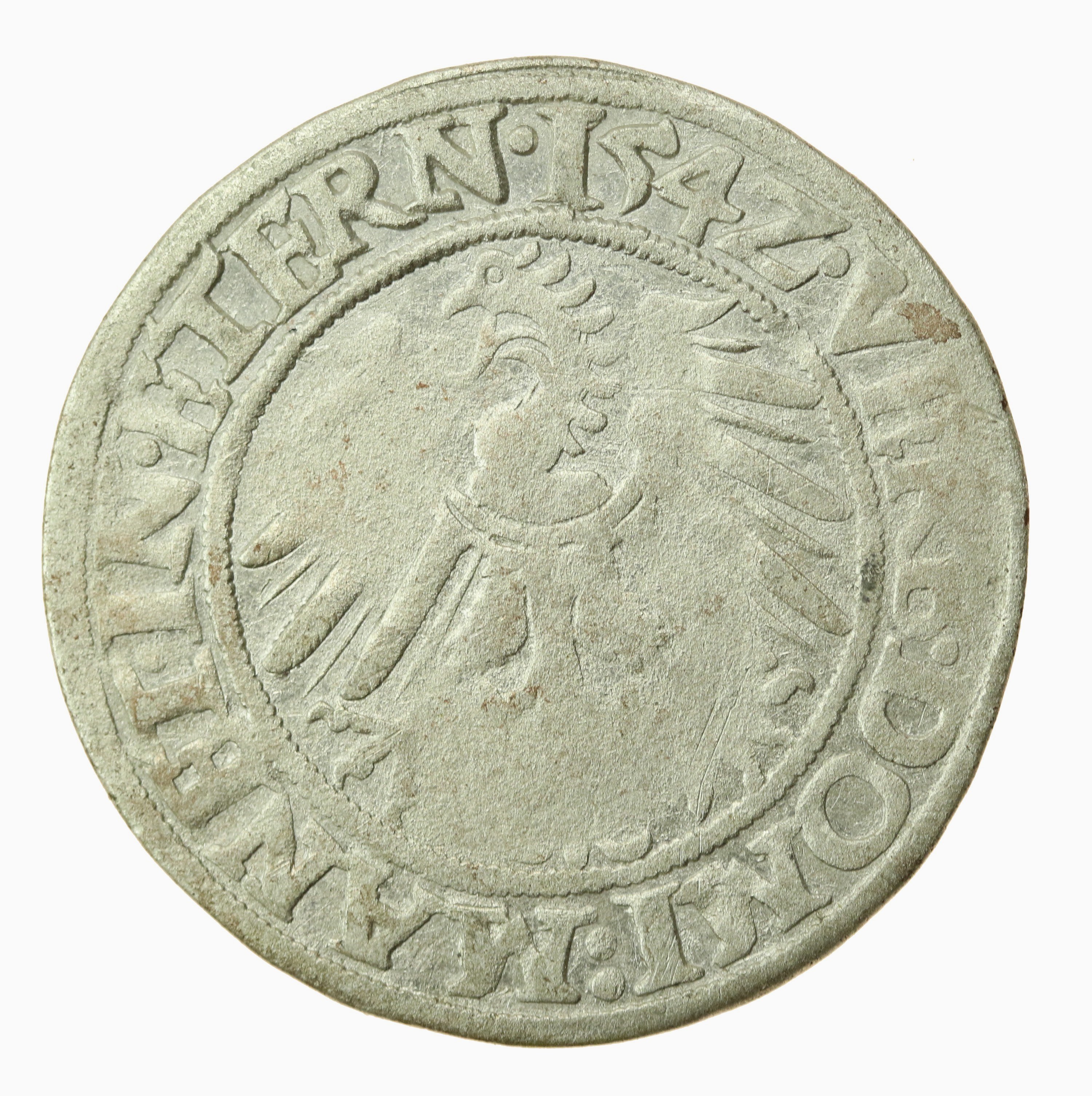 Śląsk, Księstwo Legnicko-Brzesko-Wołowskie, Fryderyk II, Grosz 1542, Legnica. Stan 3+. Poprawnie zachowany egzemplarz. Literatura: Kopicki 4920 (R)
