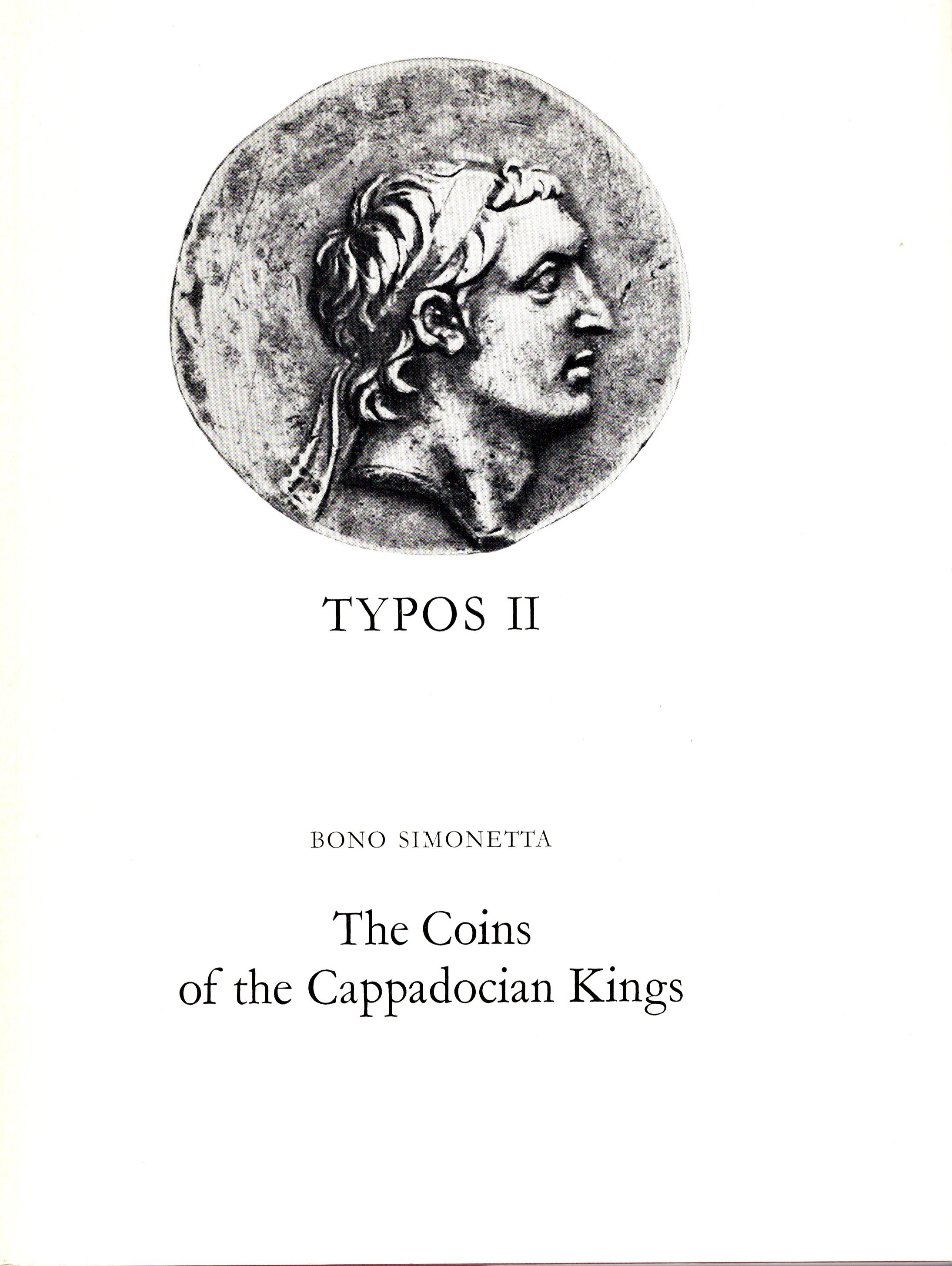 SIMONETTA BONO. - Typos II. The coins of the Cappadocian Kings. Fribourg, 1977. Pp. 54, tavv. 7. Ril. ed. ottimo stato, importante e ricercato lavoro.