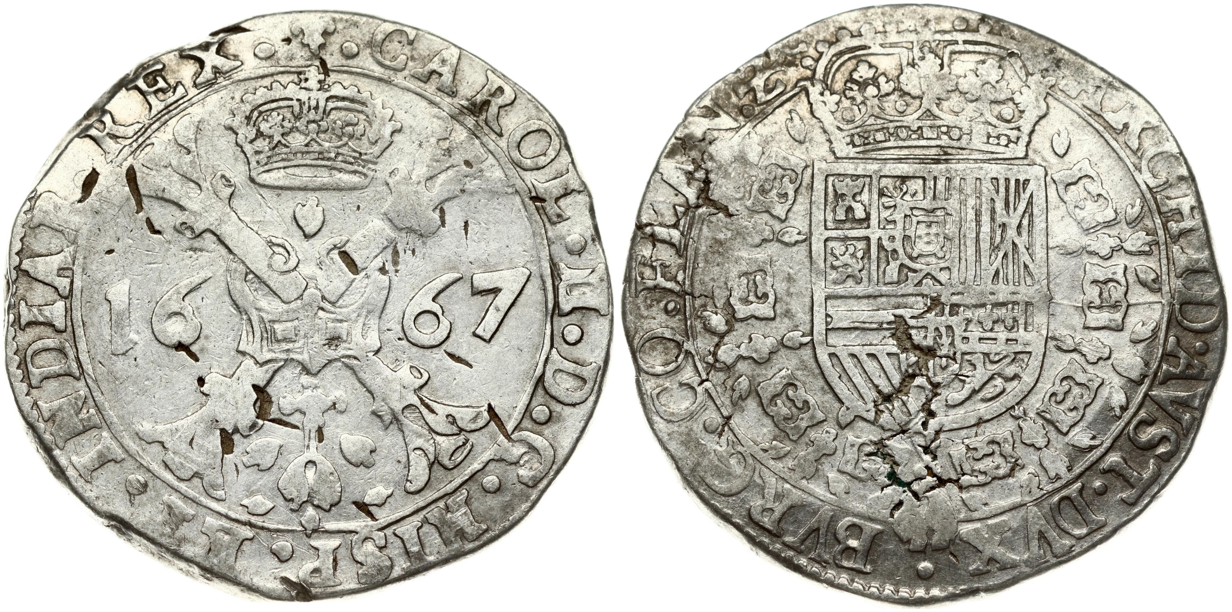 Spanish Netherlands FLANDERS 1 Patagon 1667 Charles II(1665-1700). Obverse: St. Andrew's cross; crown above...