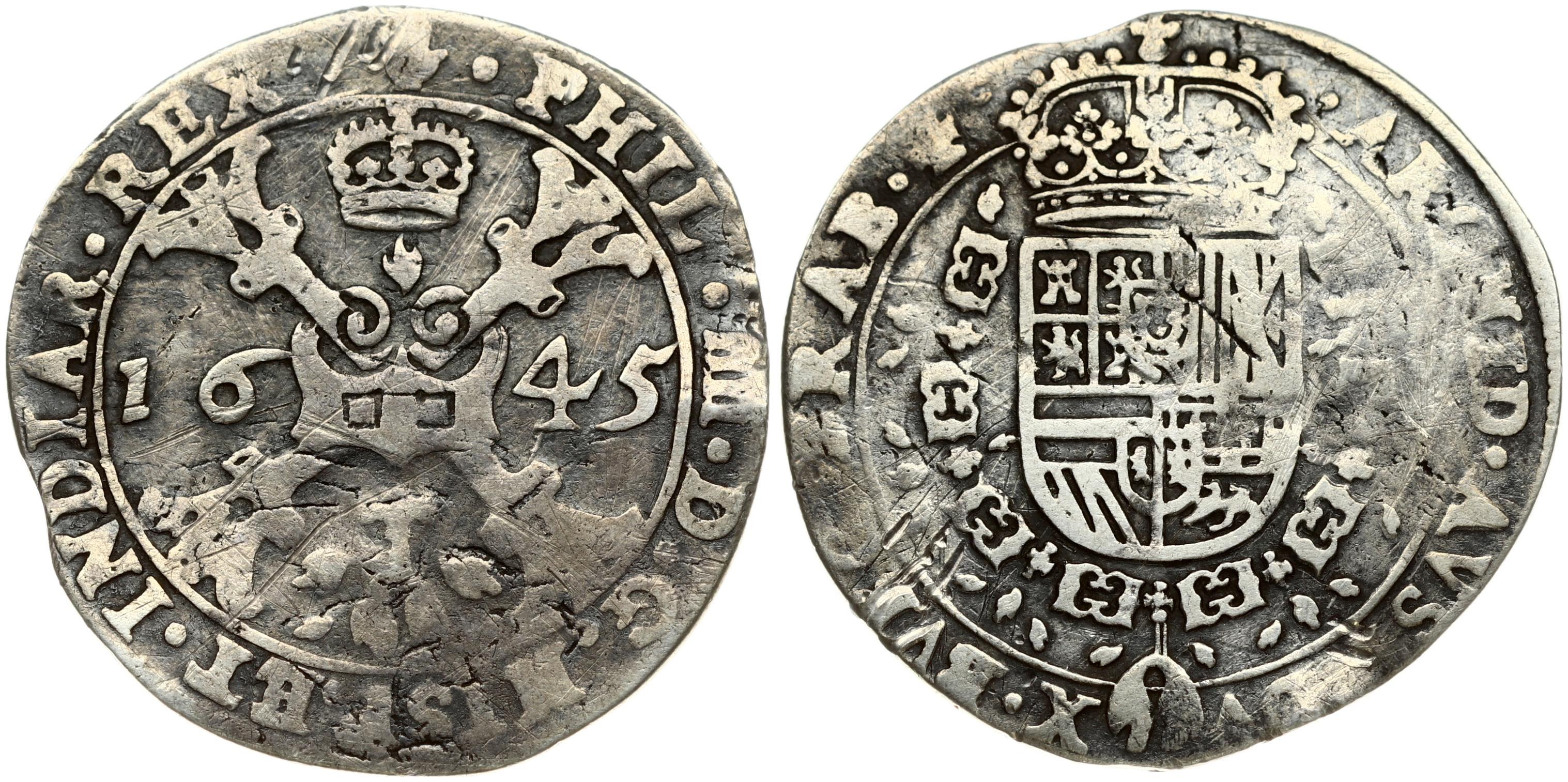 Spanish Netherlands BRABANT 1/4 Patagon 1645 Antwerp. Philip IV(1621-1665). Obverse...
