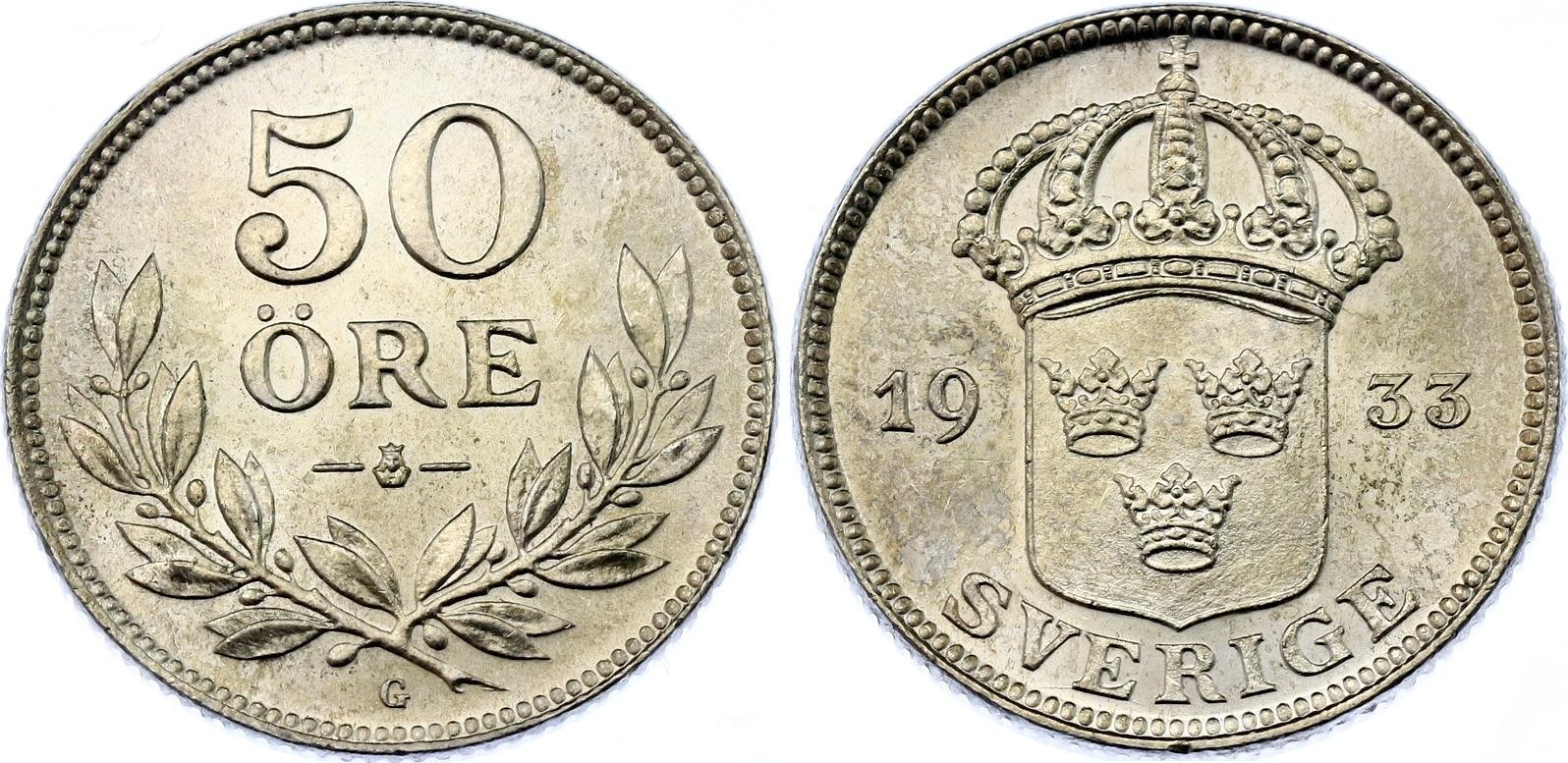 KM# 788, N# 6153; Silver; Gustaf V; UNC, Lustrous