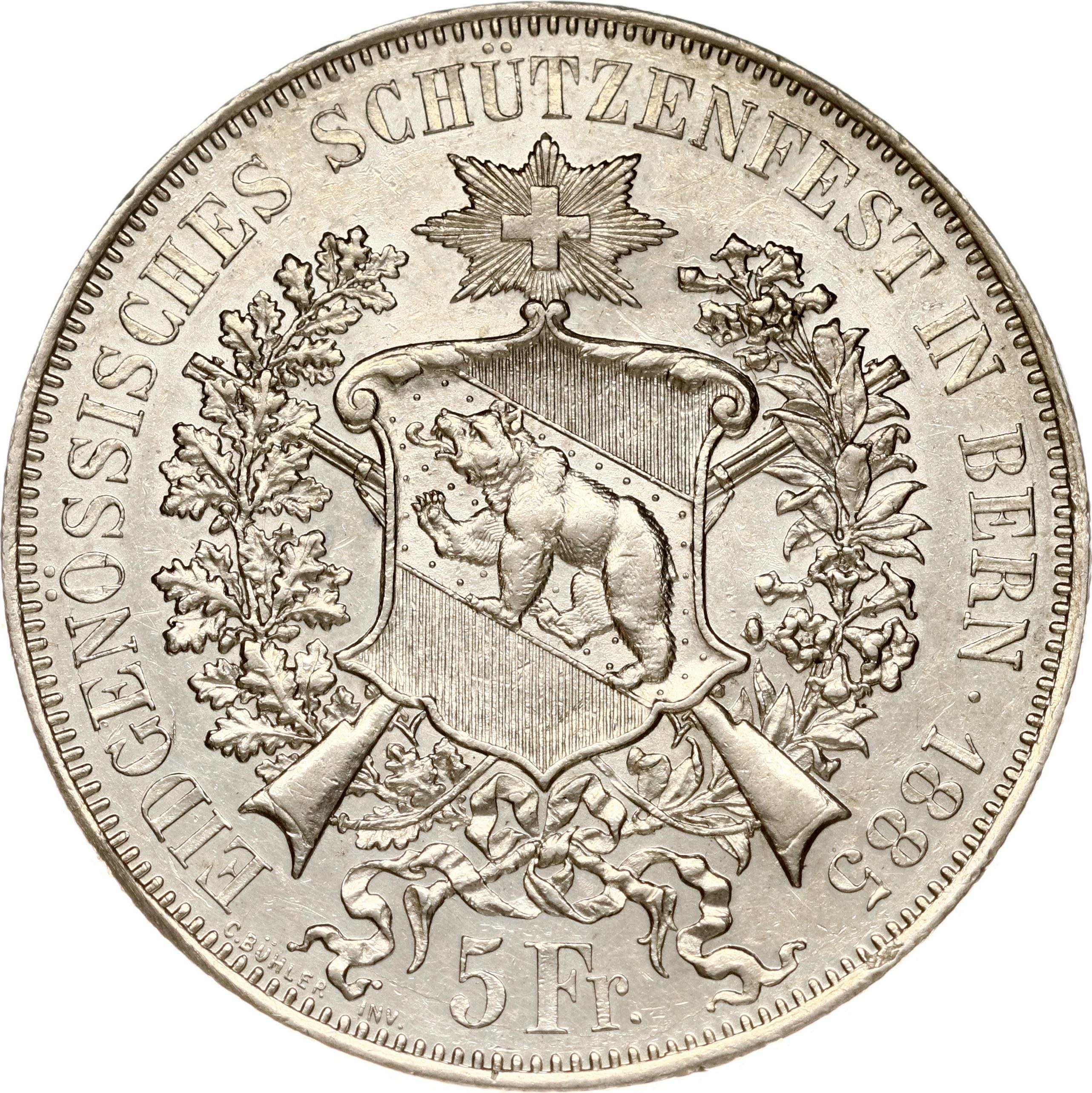 Switzerland 5 Francs 1885 Bern Shooting Festival