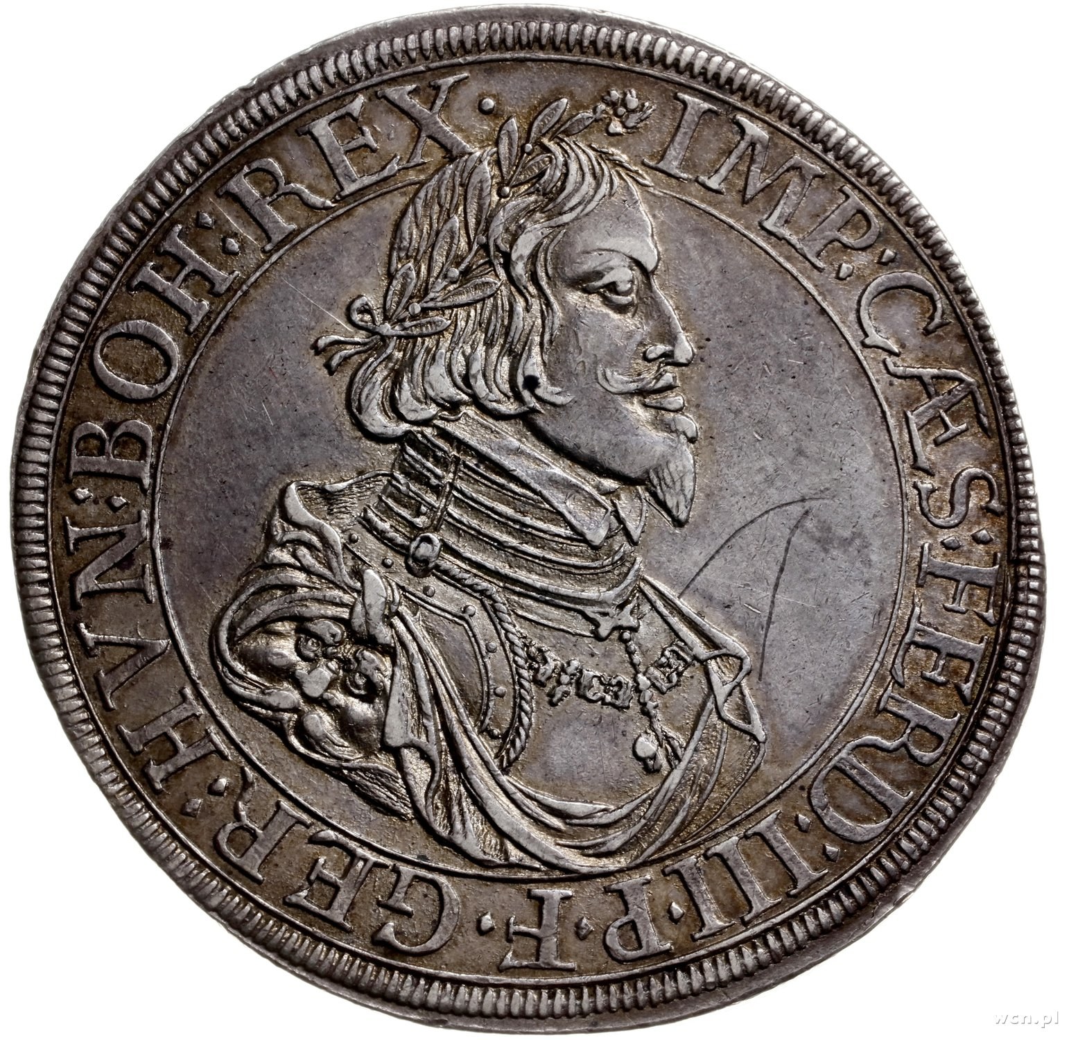 talar 1639; moneta z tytulaturą Ferdynanda III, Aw: Pop...