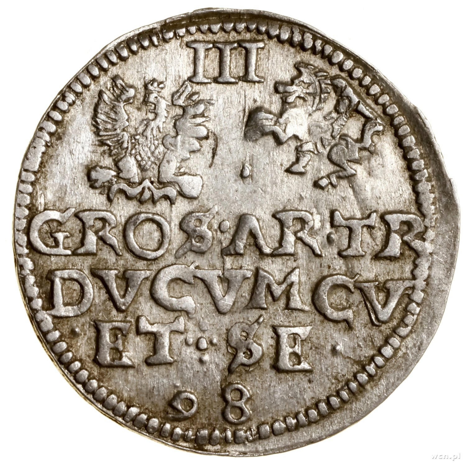 Trojak, 1598, Mitawa; kropki jako interpunkcja awersu, ...
