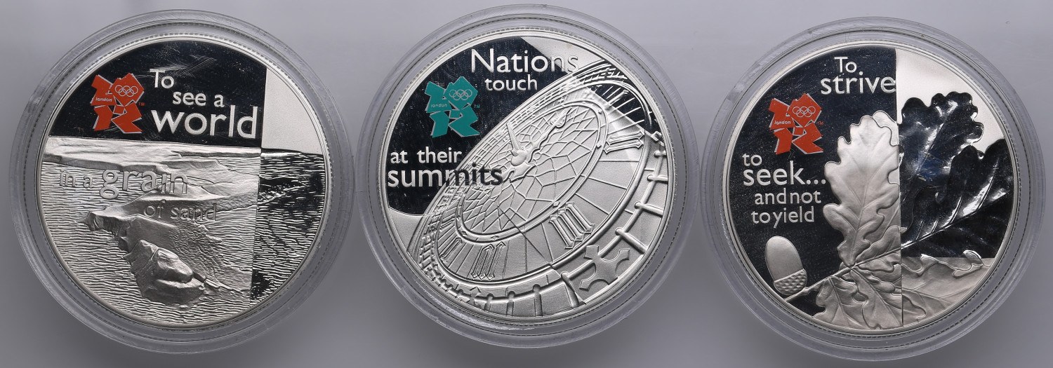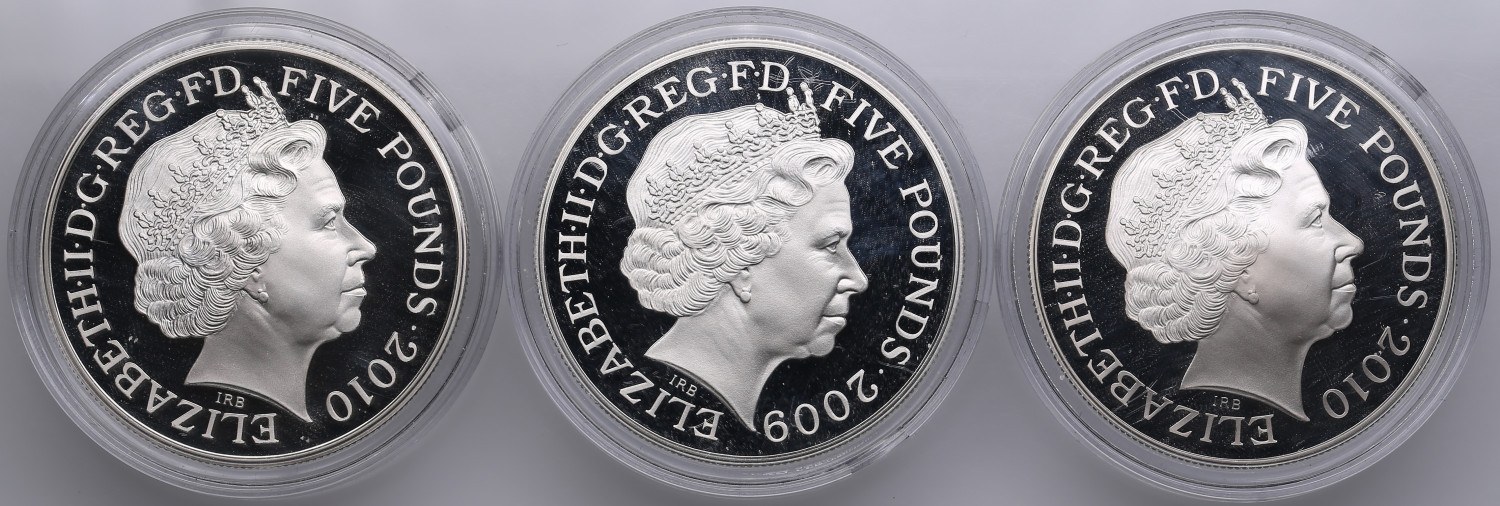 Commemorative coins: XXX Olympic Summer Games in London. 5 Pounds 2009 - A Celebration of Britain: The Mind series. Big Ben. KM 1141; Spink LO37. 5 Pounds 2010 - A Celebration of Britain: The Body series. Rhossili Bay. KM 1153; Spink LO43. 5 Pounds 2010 - A Celebration of Britain: The Body series. Oak. KM 1155, Spink LO47.