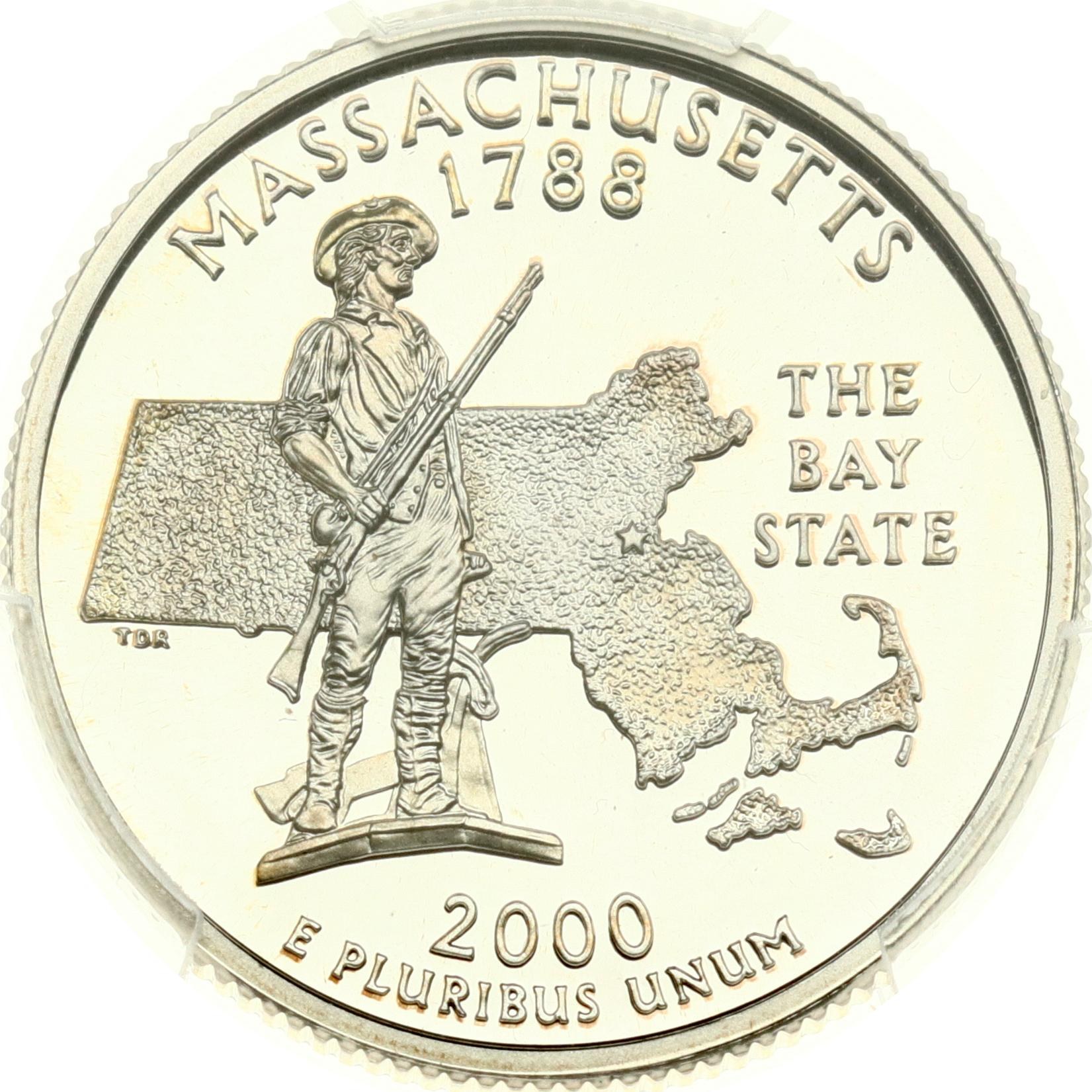 USA 1/4 Dollar 2000 S 'Washington Quarter' Massachusetts - Silver PCGS PR 69 DCAM