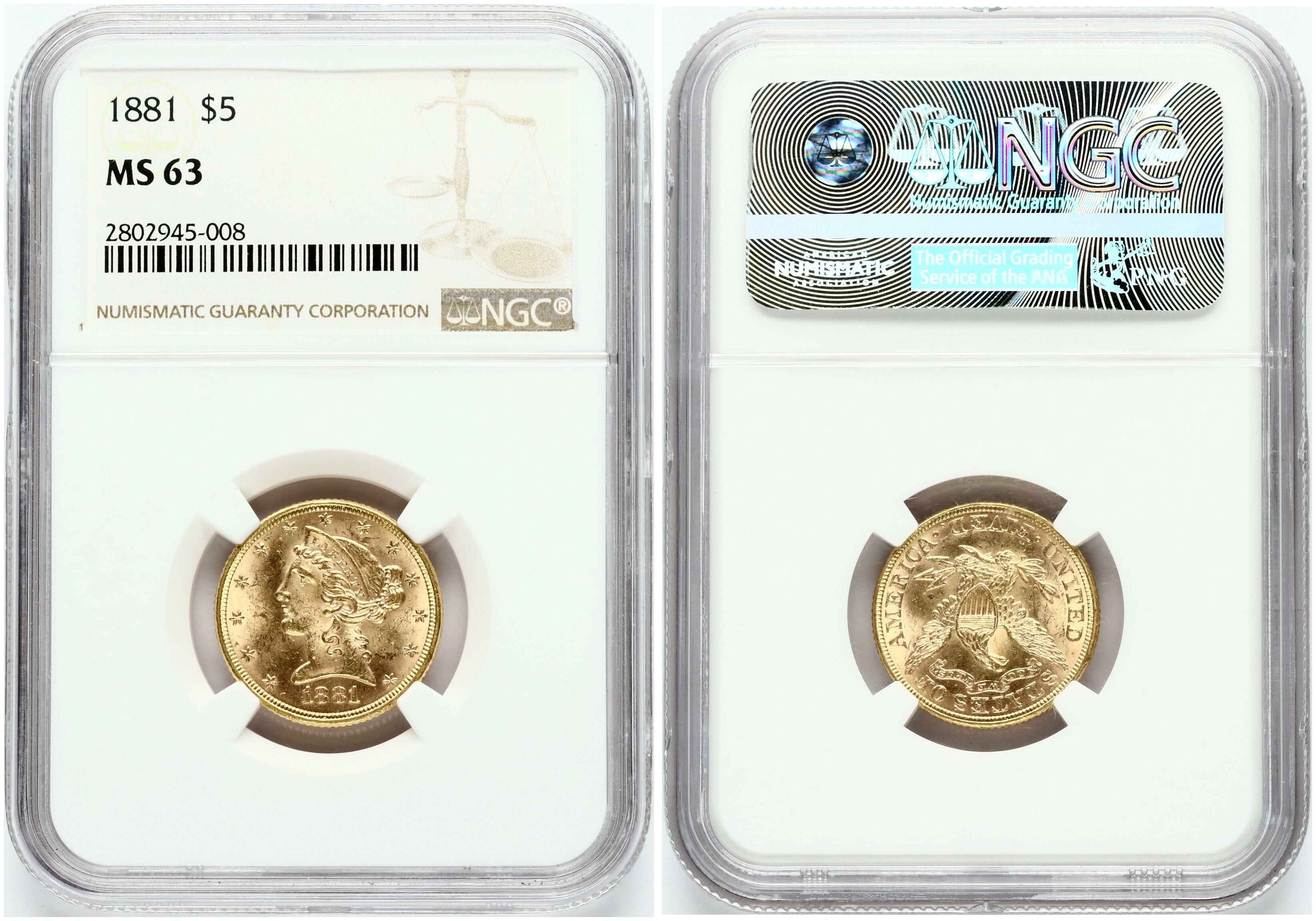 USA 5 Dollars 1881 Liberty Head NGC MS 63