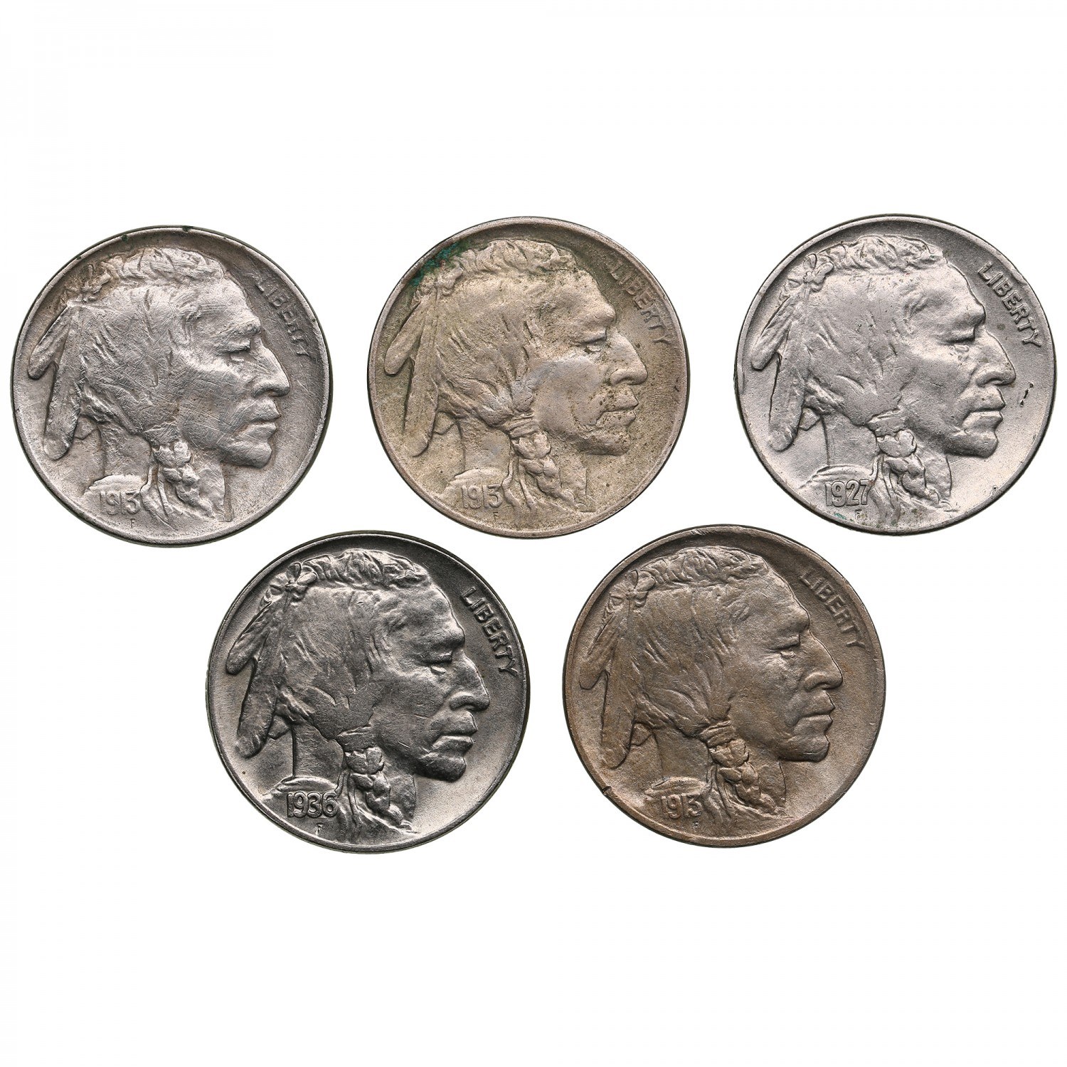USA 5 Cents 1913, 1927, 1936 (5)