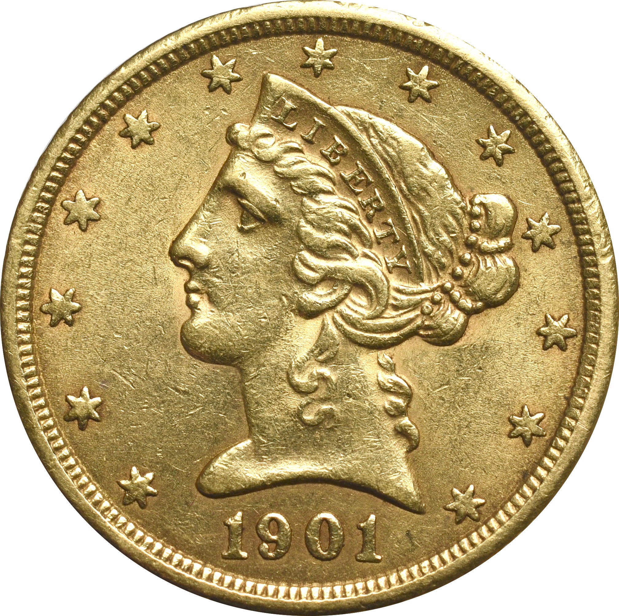 Rewers: głowa wolności w otoczeniu gwiazd, pod nią data 1901;