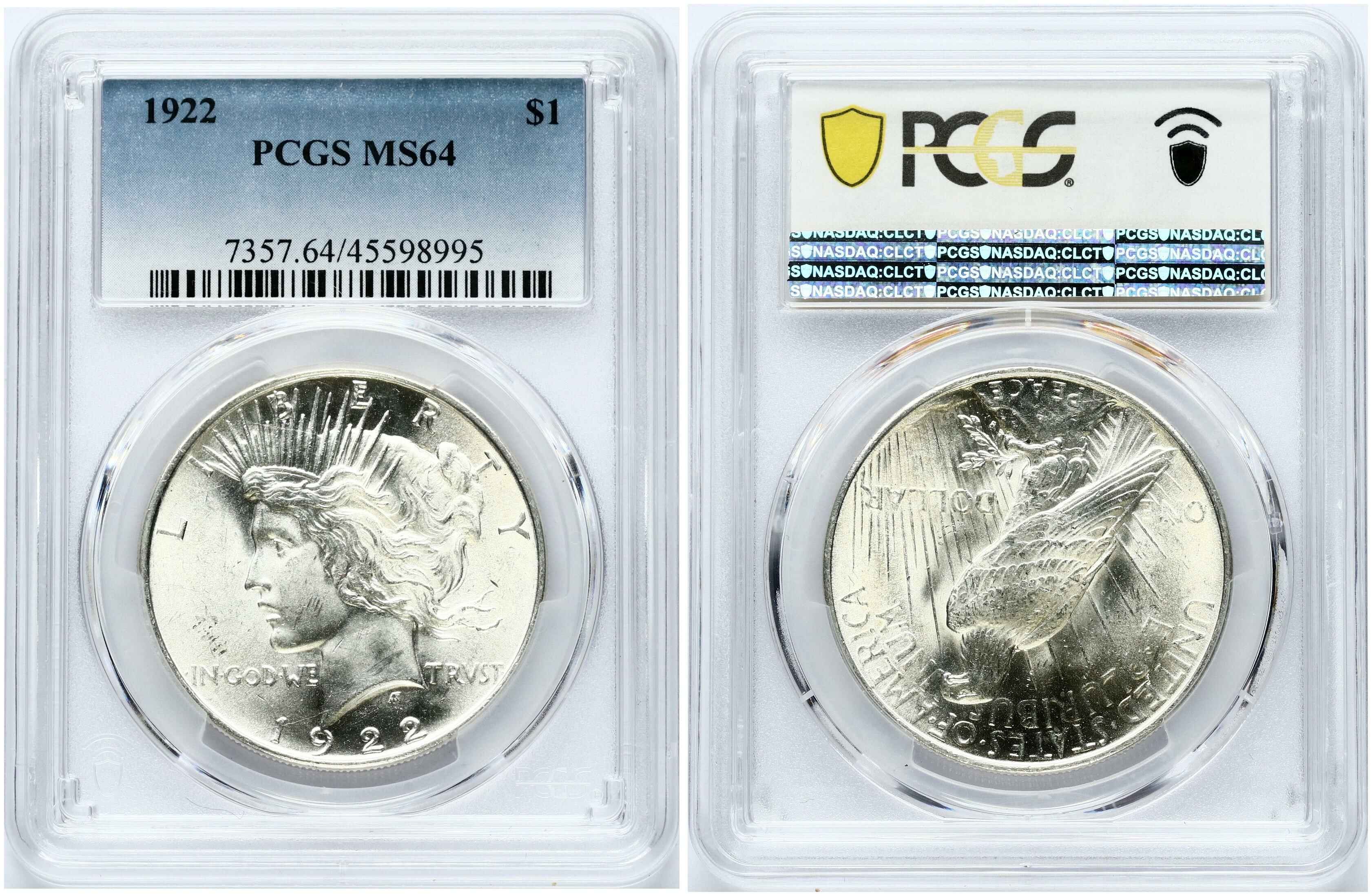 USA 1 Dollar 1922 'Peace Dollar' Philadelphia PCGS MS 64