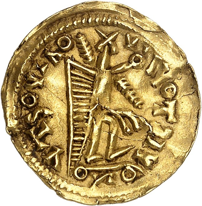Rv. VTSOVIAO - VIVOTIIV. Victoire stylisée à droite, tenant une palme et une couronne ; à l’exergue : O/O.