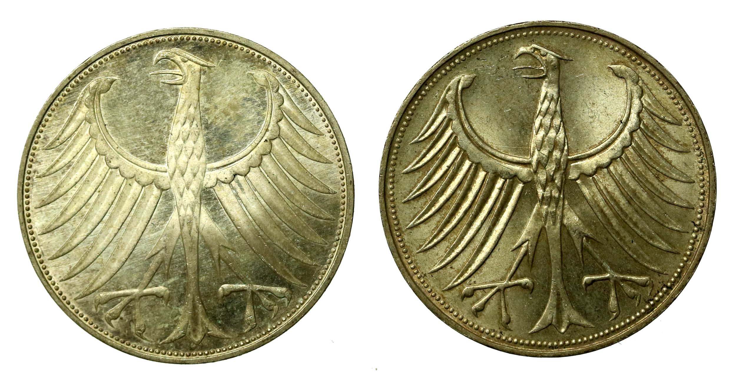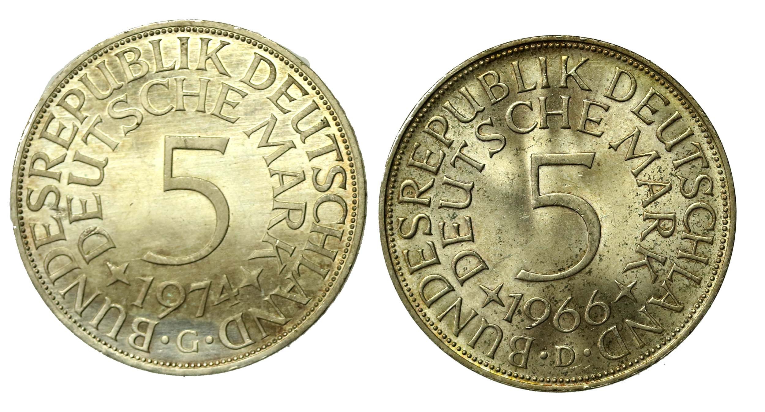 Niemcy zachodnie, RFN, zestaw 5 marek 1966 i 1974. Razem 2 szt.