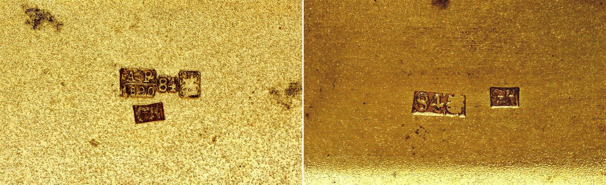Gold plated silver (0.840) 191.28 g., 120.5 x 78 mm.