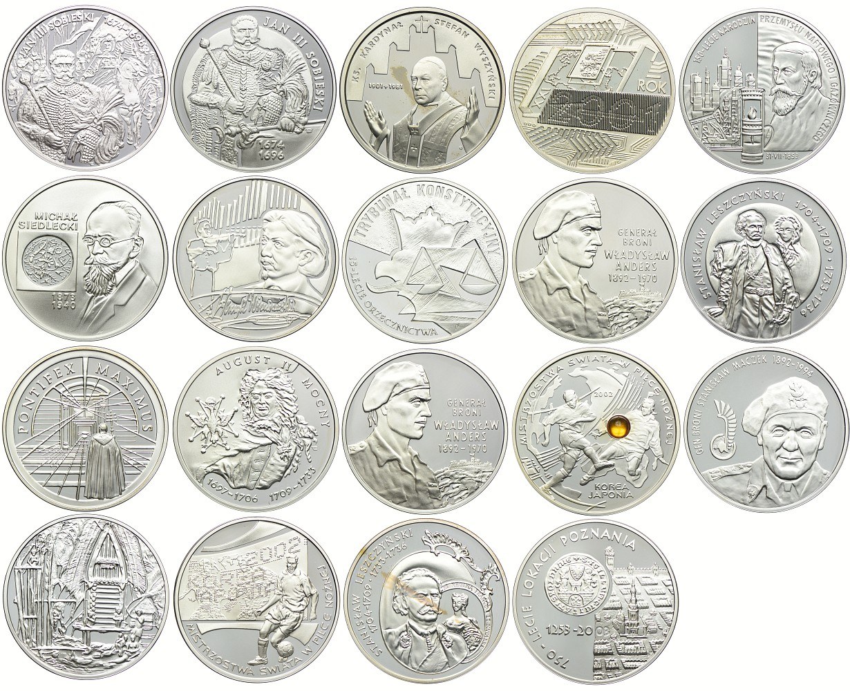 Ag925, waga 19 x 14,14g, monety w oryginalnych plastikowych kapslach.