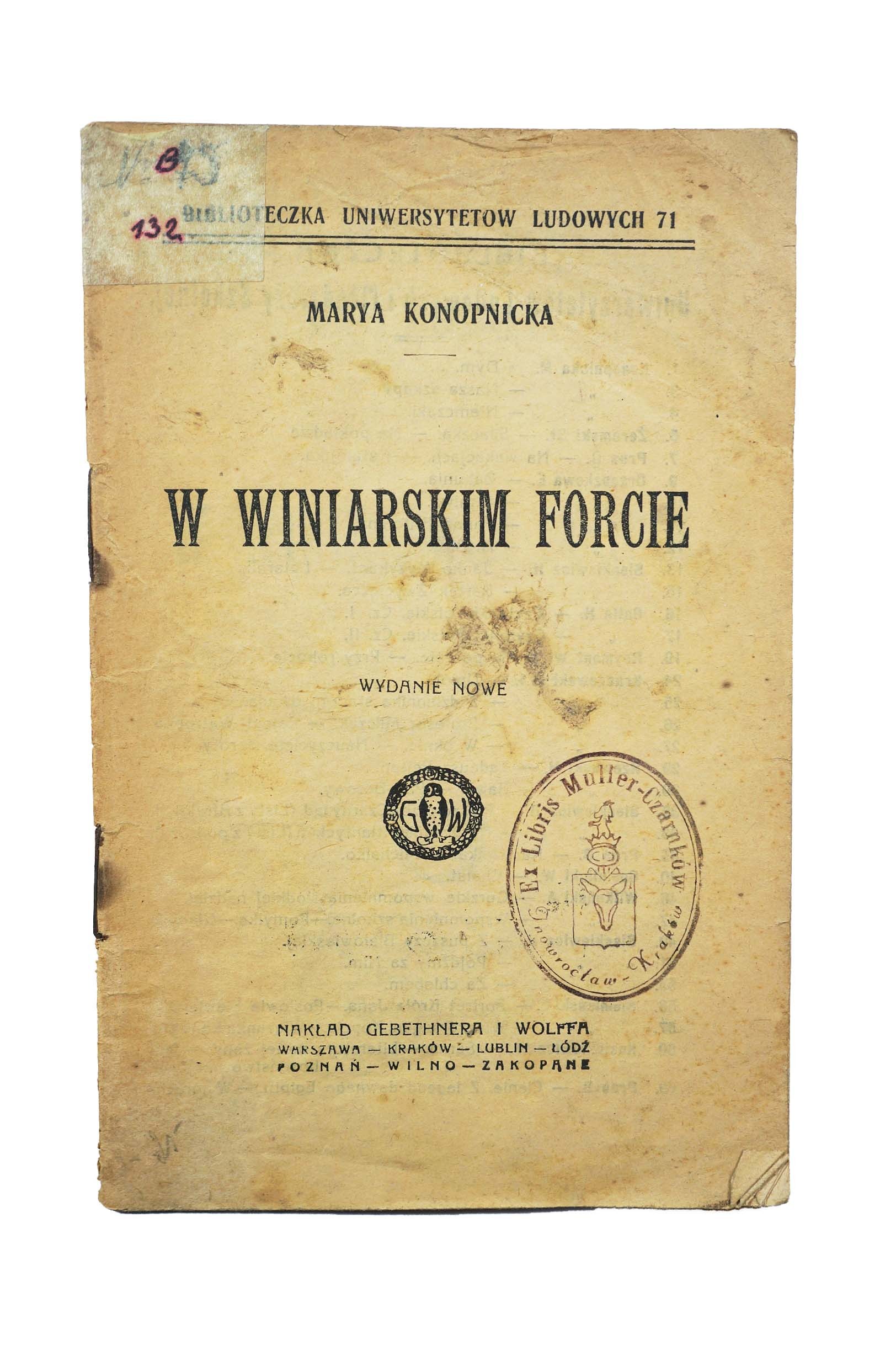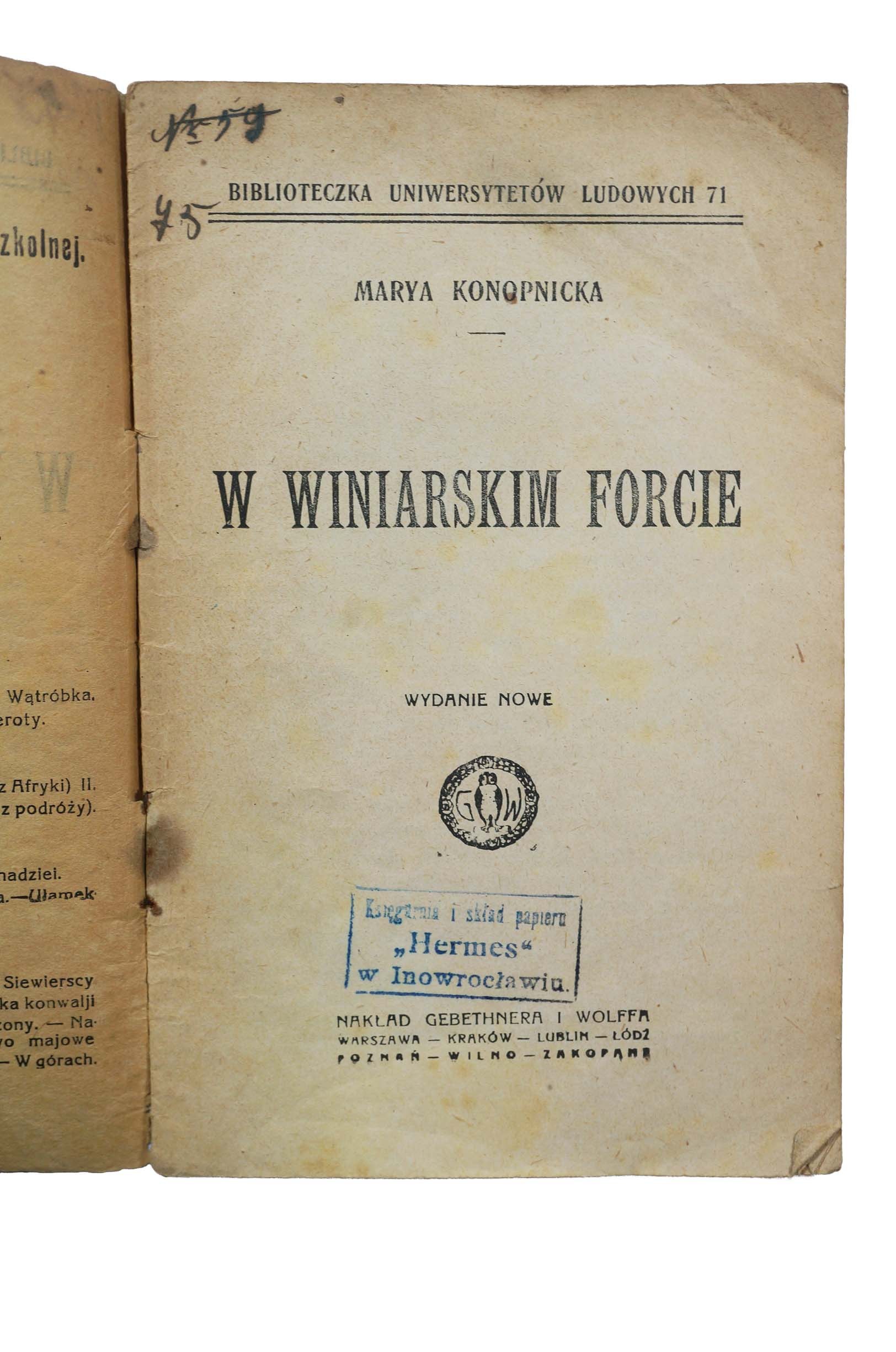 W WINIARSKIM FORCIE - Maria Konopnicka, z serii : "Biblioteczka Uniwersytetów Ludowych" nr 71, nakład Gebethnera i Wolffa, f. 11,5 x 18cm, s. 17