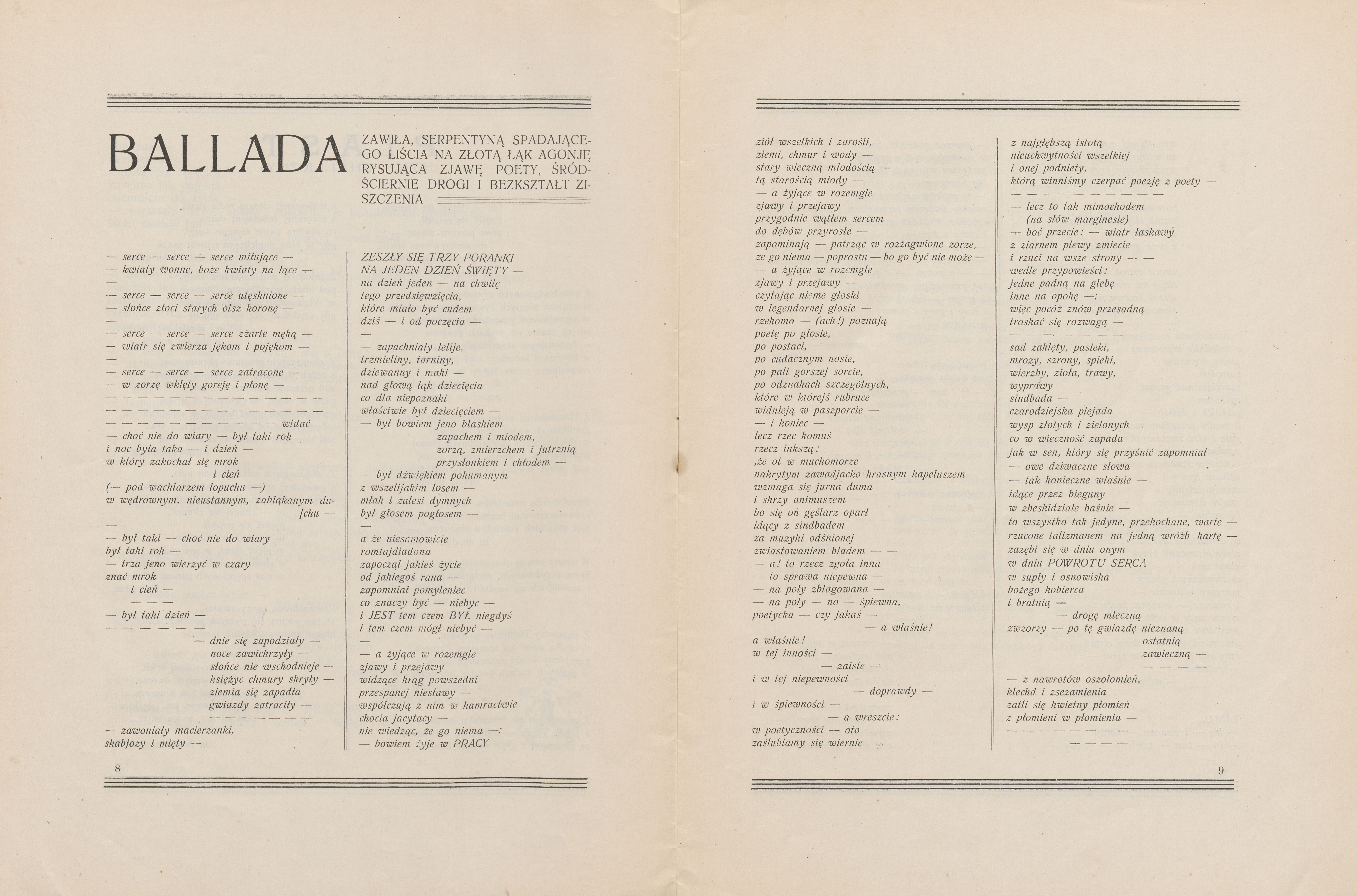 W numerze znalazły się m.in. teksty Jana Nepomucena Millera, Emila Zegadłowicza, Bolesława Leśmiana, Stanisława Miłaszewskiego, Stanisława Ignacego Witkiewicza i Edwarda Kozikowskiego, oraz ilustracje Edwarda Porządkowskiego i Wacława Wąsowicza.