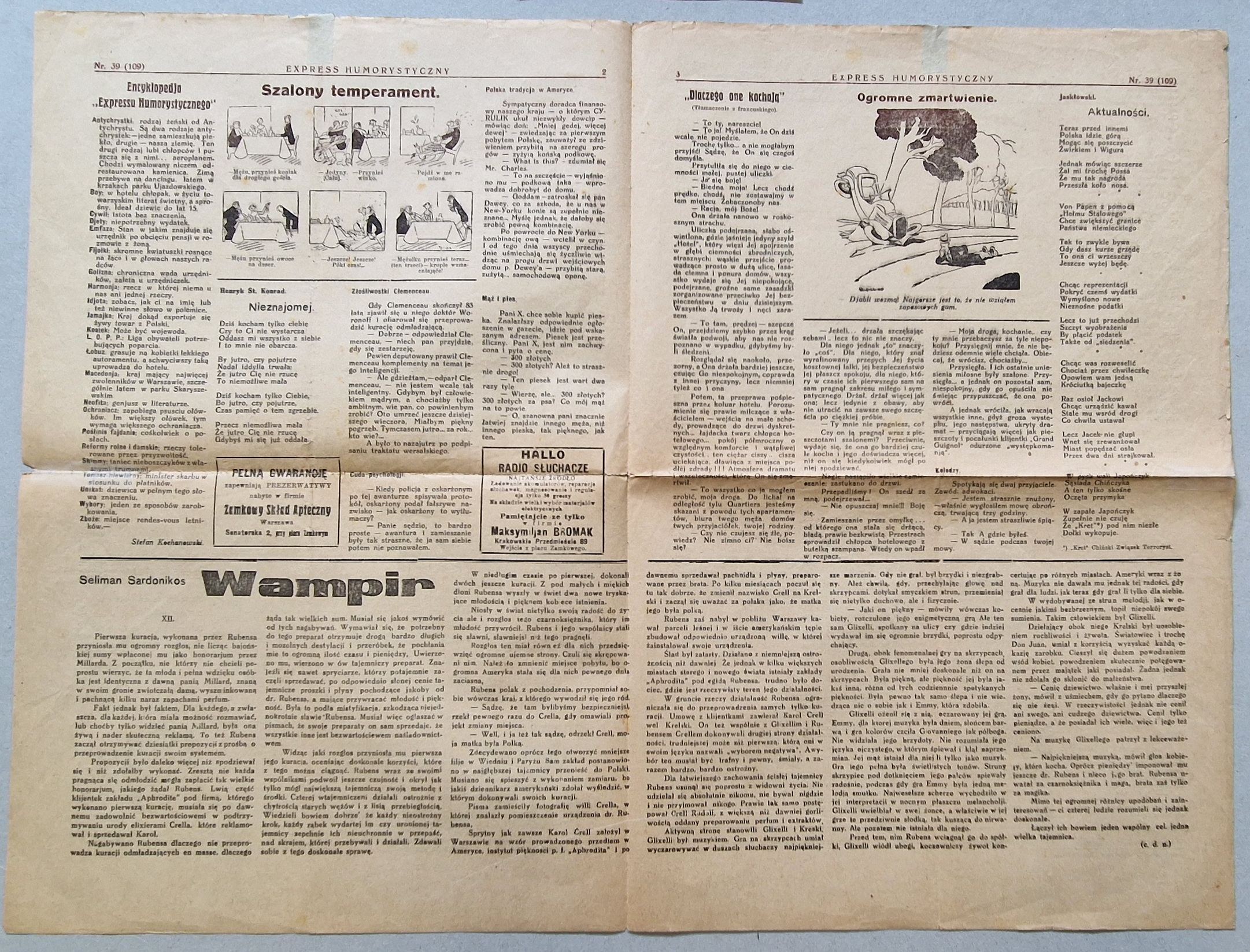 Express Humorystyczny. Wychodzi w każdy czwartek. Rok III Nr 39 [109].