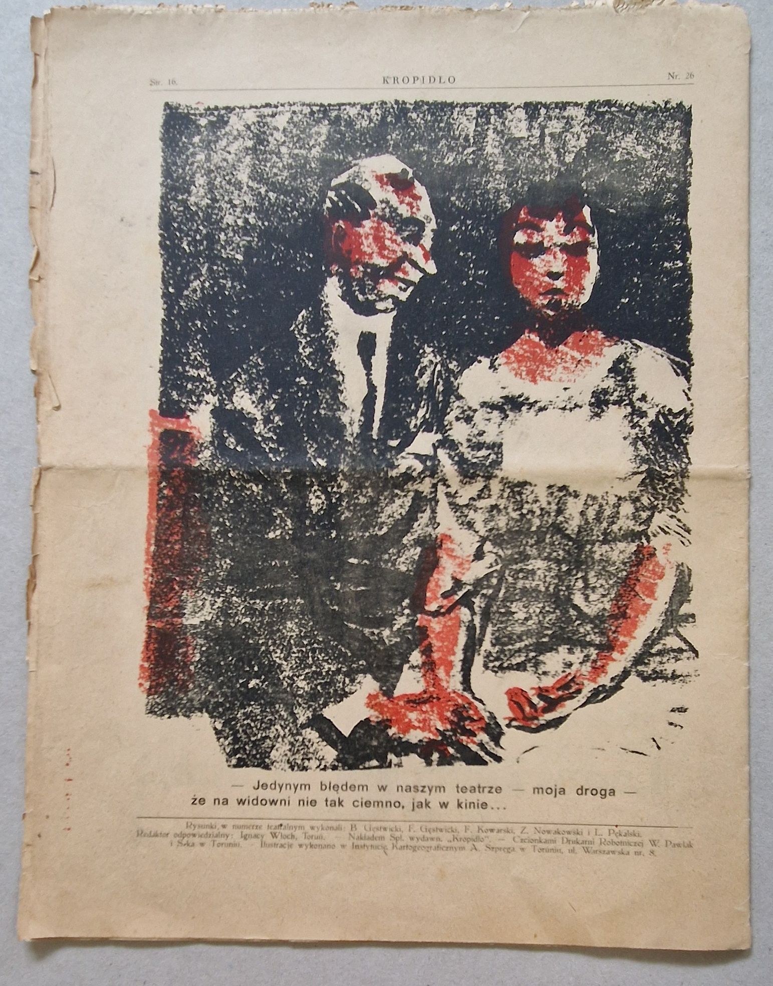 Rysunki w numerze teatralnym wykonali: B. Gęstwicki, F. Gęstwicki, F. Kowarski, Z. Nowakowski i L. Pękalski. Ilustracje wykonano w Instytucie Kartogeograficznym A. Szpręga w Toruniu, ul. Warszawska 8.