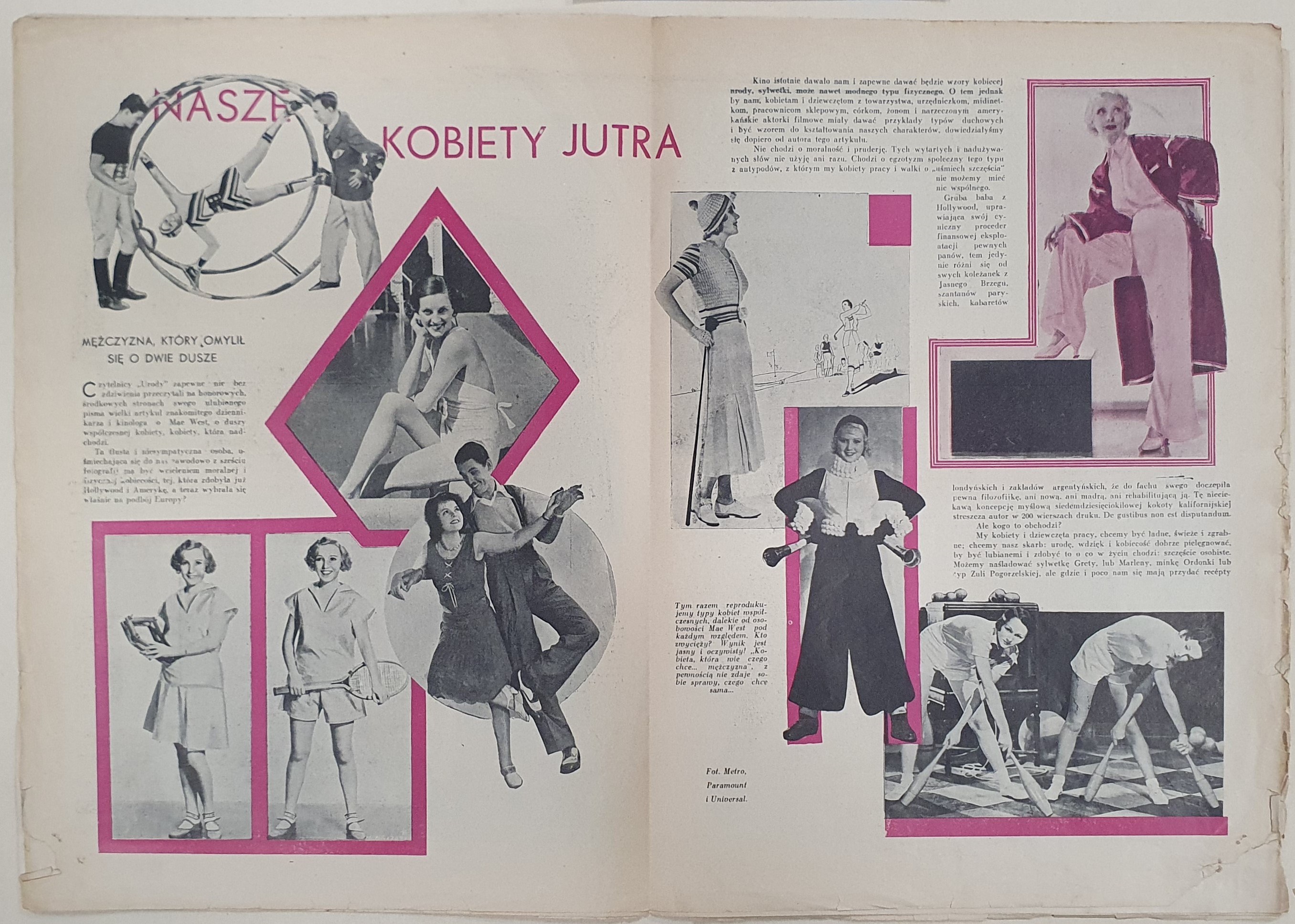W treści m.in.: Porady i parodie kosmetyczne; Higiena paryżanek; Kosmetyka odległych czasów; Stylizacja urody; Symfonia zapachów; Czego kobieta szuka w mężczyźnie; Na rozkładówce fotomontaż: Nasze kobiety jutra [na sportowo-m.in. golf, tenis, taniec].