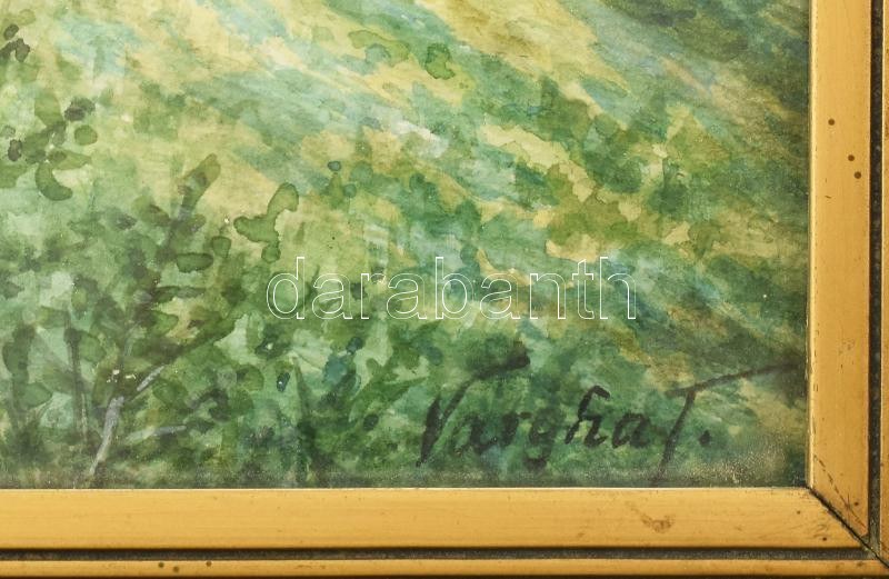 2 db felvidéki vár képe: Vargha Tamás: Fülek, ..., akvarell-papír, jelzett, sérült fakeretben 24x33 cm ...