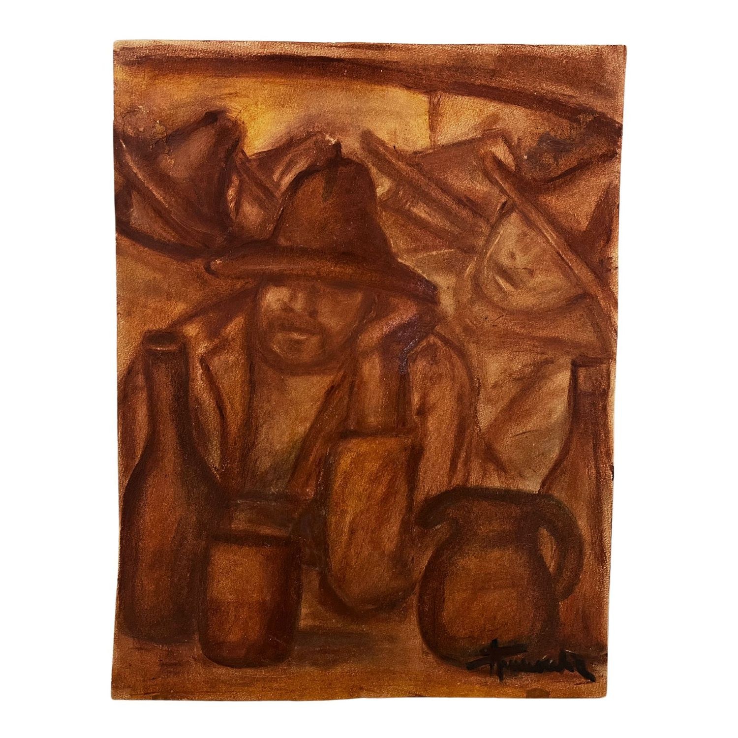 Later, his father went to war and returned with an even more rooted anarchist conviction. Ampleto entered the workshop, tiny, where he witnessed numerous conversations of his father and spent his youth among the shops, the port, and summers at his grandparents' house, listening to more "scholarly" conversations filled with quotes from great classics of literature. He heard, knew, and read about Orlando Furioso, Armida, and Don Quixote, attempting to give each of them characteristics drawn from the characters of his reality. Cowboys, port workers, and fruit stalls emerge, with changing colors and sharp, clean shapes more like sculptures in rocks than fluid brushstroke portraits.