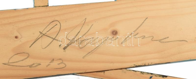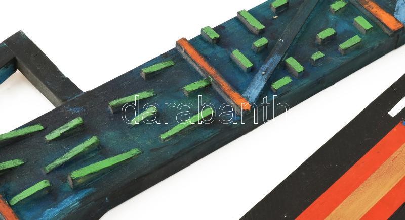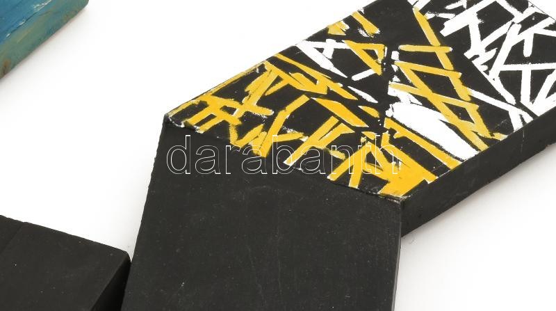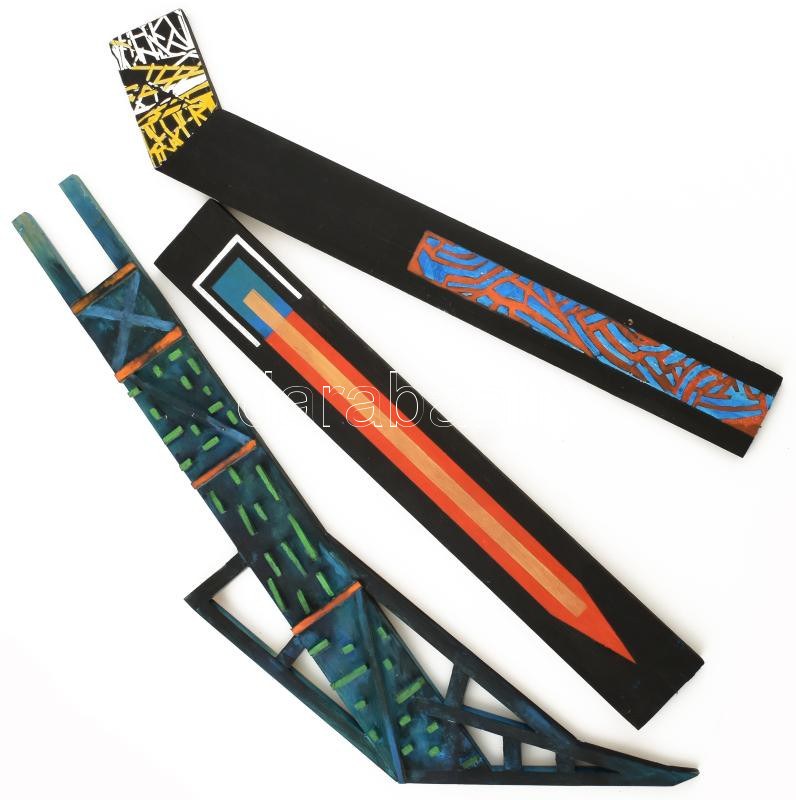 A. Varga Imre (1953-), 3 db mű: Geometrikus alkotások. Olaj, fa, egyik jelzett és datált a hátoldalán (A. Varga Imre 2013). 82x17x2, 95x35x3 és 72x10x2 cm / A. Varga Imre (1953-), 3 pcs of art works, oil on wood, one of them signed