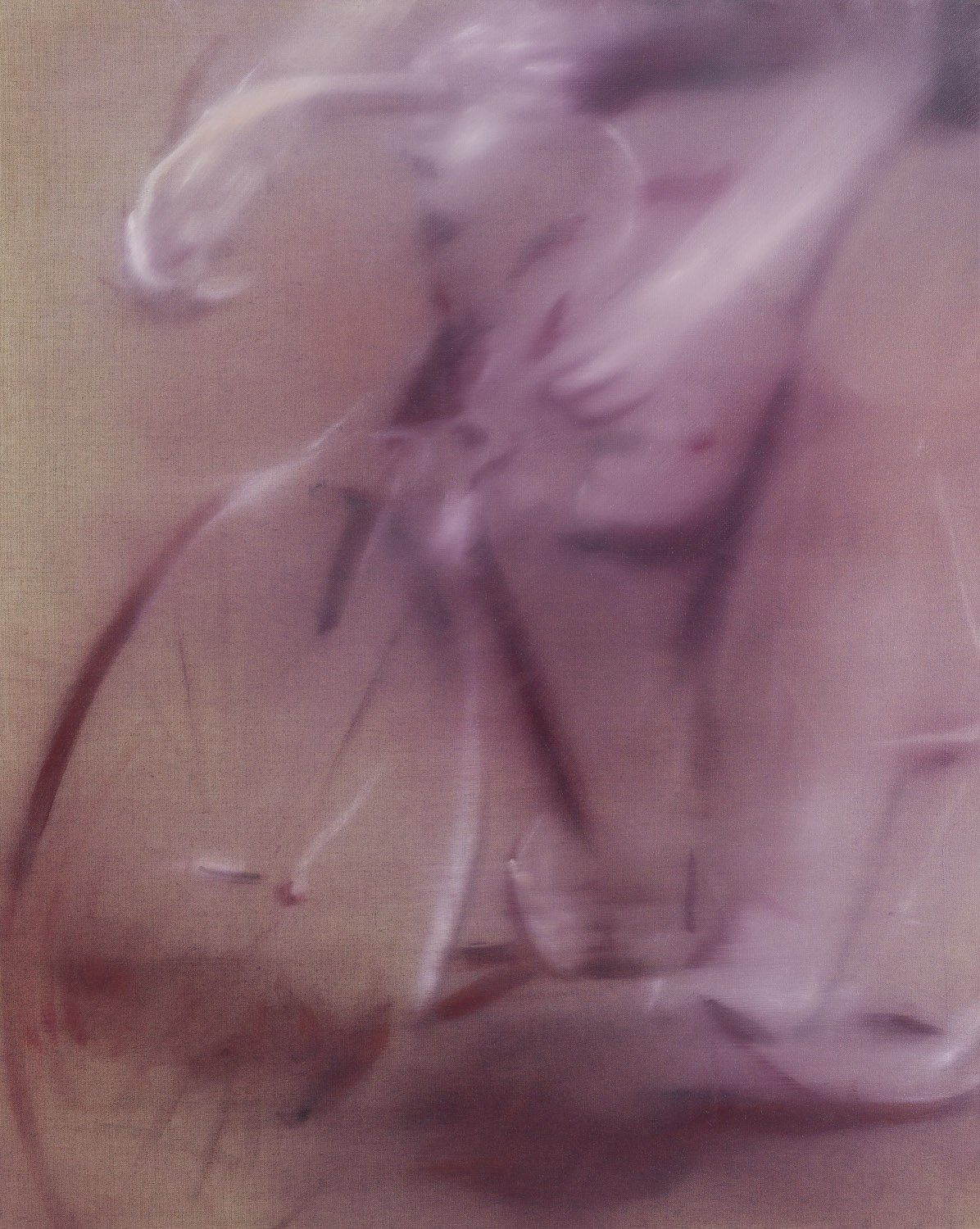 Wybrałam tę postać do tegorocznej edycji Herstory ze względu na własną pasję do tego sportu. Niesamowitym dla mnie jest uczucie, gdy w trakcie wyprawy, po długotrwałym wysiłku, jazda na rowerze zdaje się być czynnością samoistną – jakby nogi jednoczyły się z maszyna. Zapominam o powtarzalnej aktywności fizycznej skupiając się wyłącznie na prędkości i swoim celu. Punktem wyjściowym do namalowania obrazu było właśnie to odczucie – samonapędzającej się maszyny i ciągłego badania, po czym przekraczania swoich limitów”.