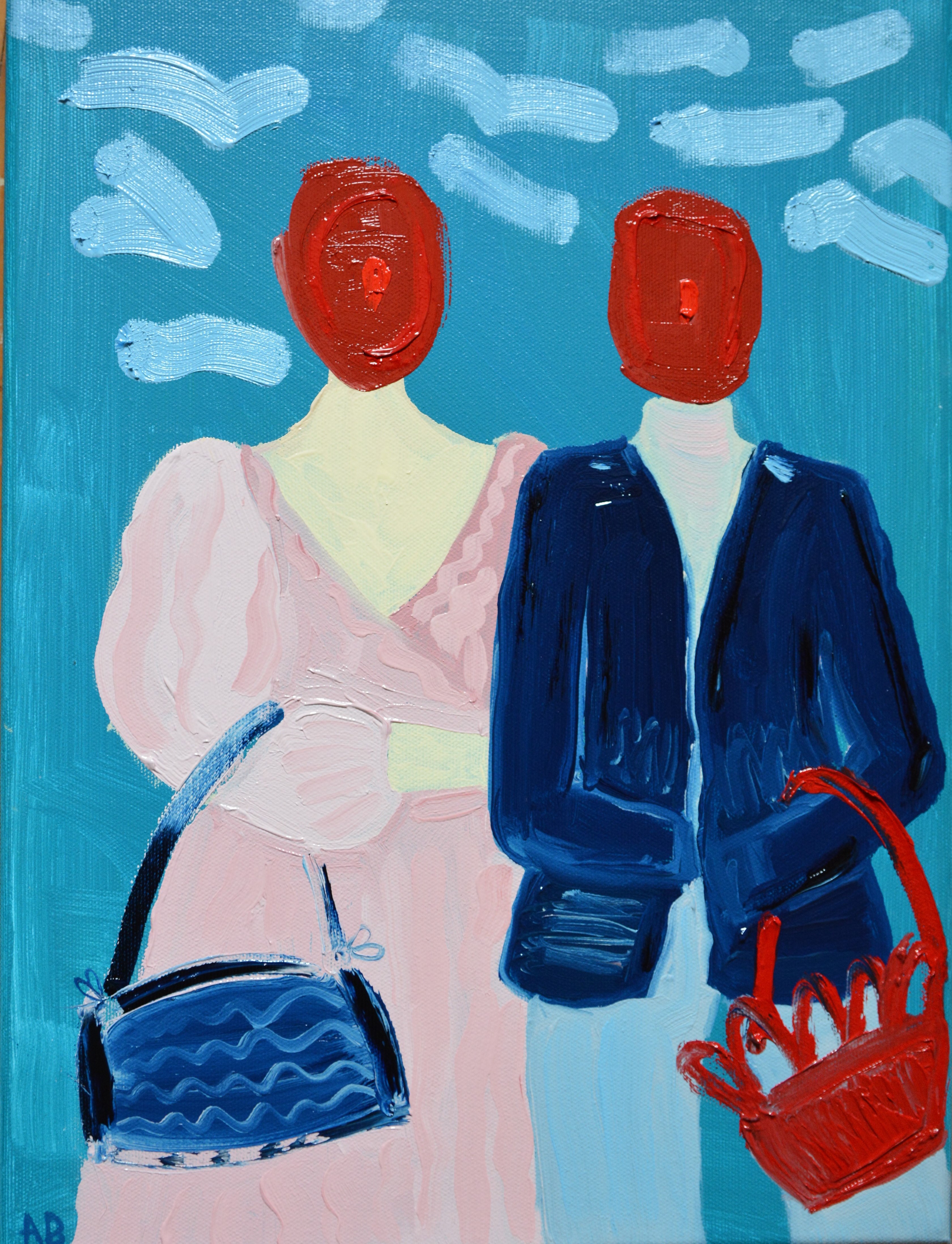 sygnowany ldr,opisany, sygnowany, datowany na odwrociu: '' SIOSTRY Z TOREBKAMI, | Anieszka Brzezińska | 2022 ''