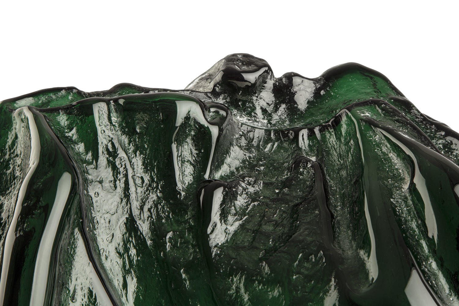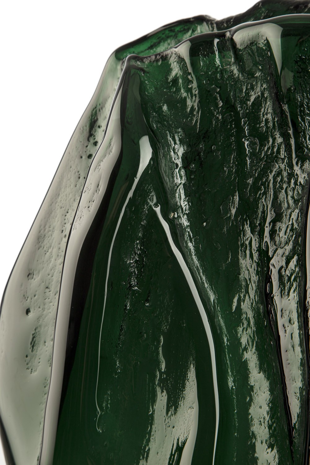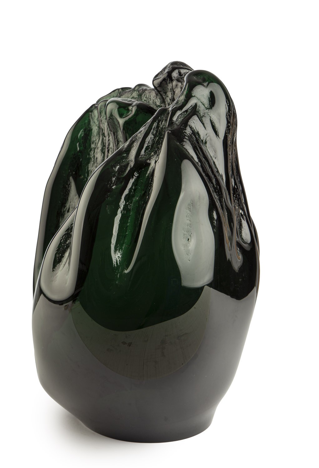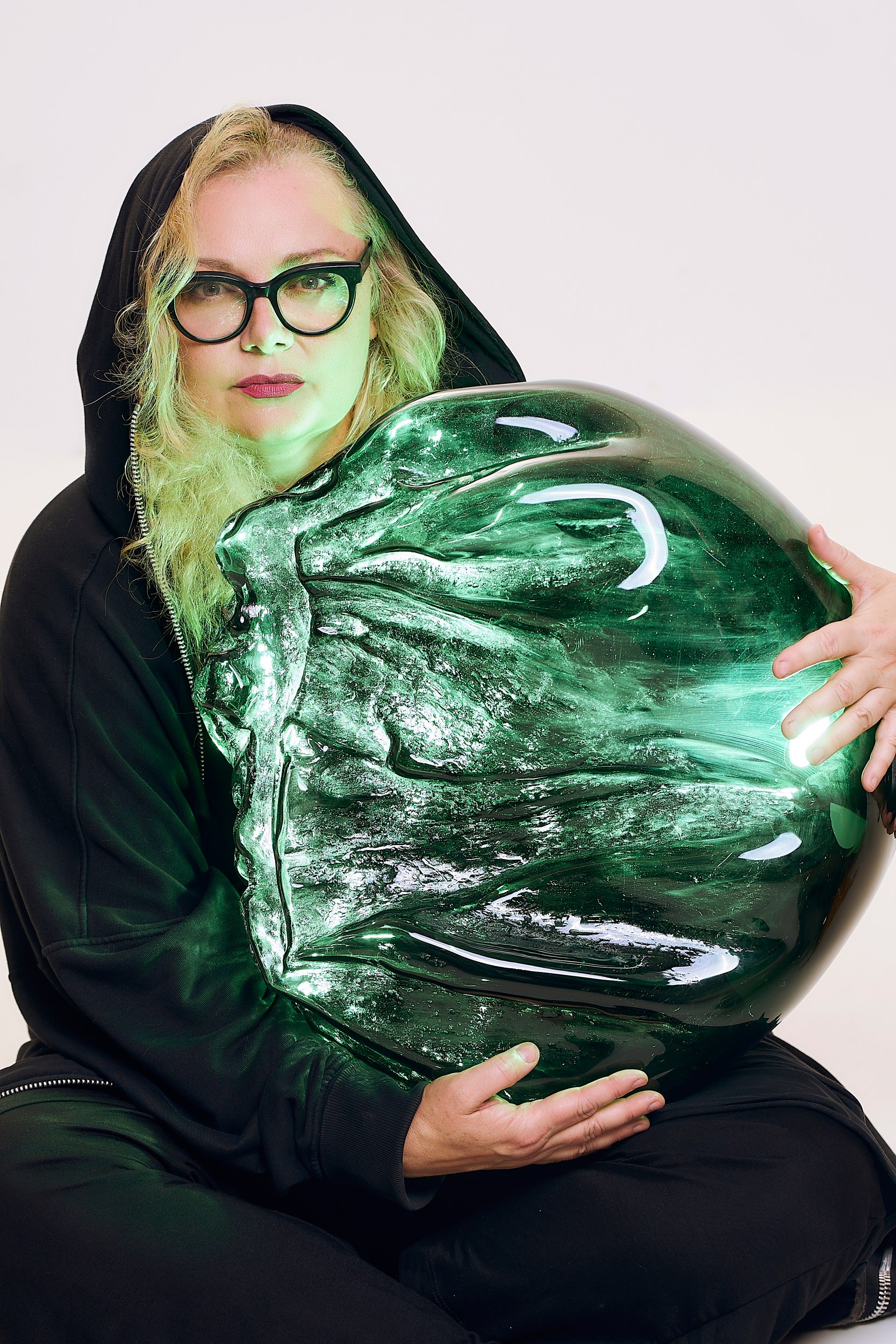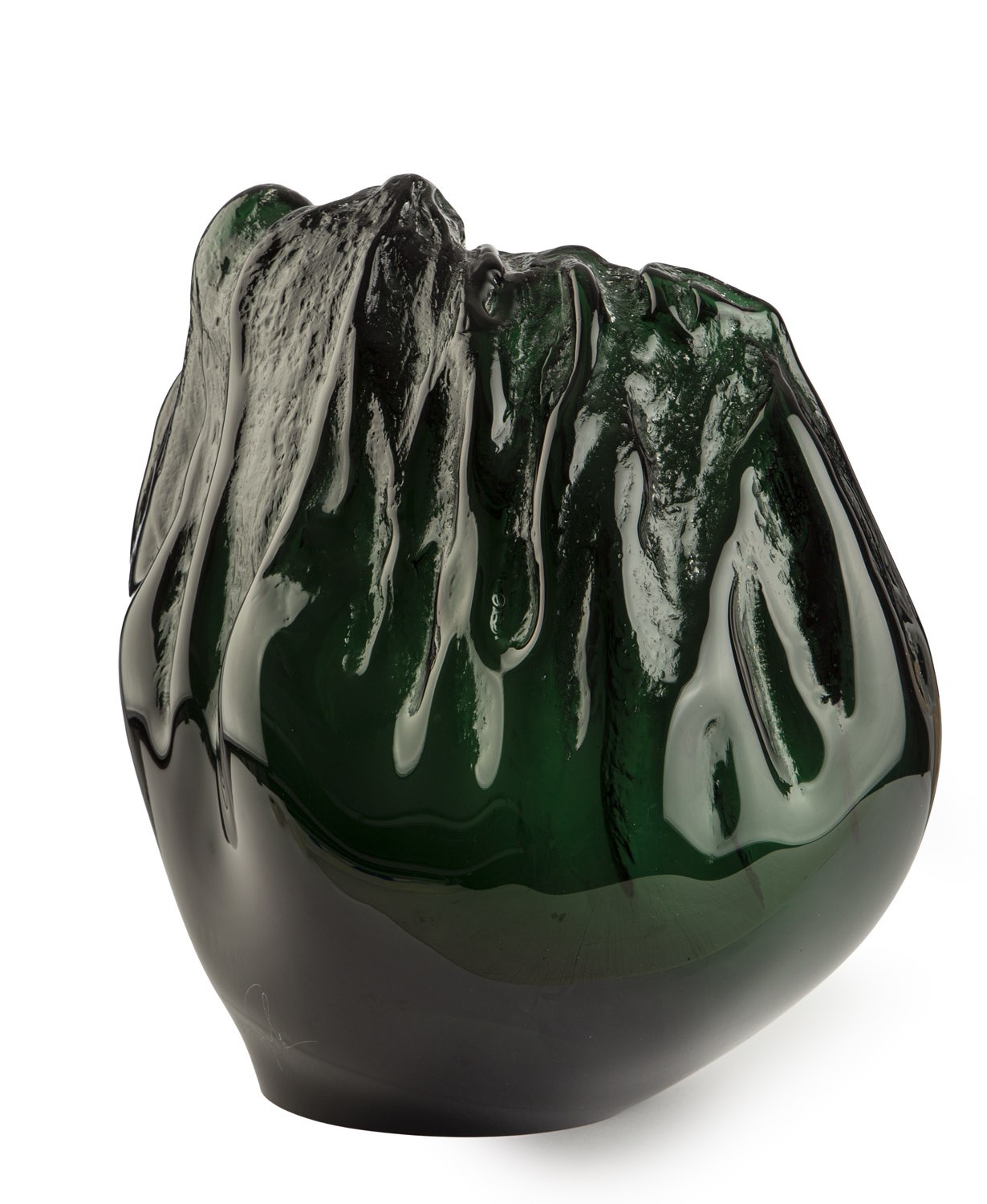 Rzeźba “Lesie ojcze mój” inspirowana jest wierszem Papuszy o tym samym tytule. Zrealizowałam ją techniką hutniczą na gorąco, metodą własną. Do wykonania rzeźby, nadania jej charakterystycznego organicznego charakteru użyłam gałęzi drzew, kory - które spalając się w żarze płynnego szkła o temperaturze niemal 1000 stopni celsjusza odcisnęły swoją formę w szkle. Szkło sodowo-wapniowe. Zieleń szkła barwiona w masie”.