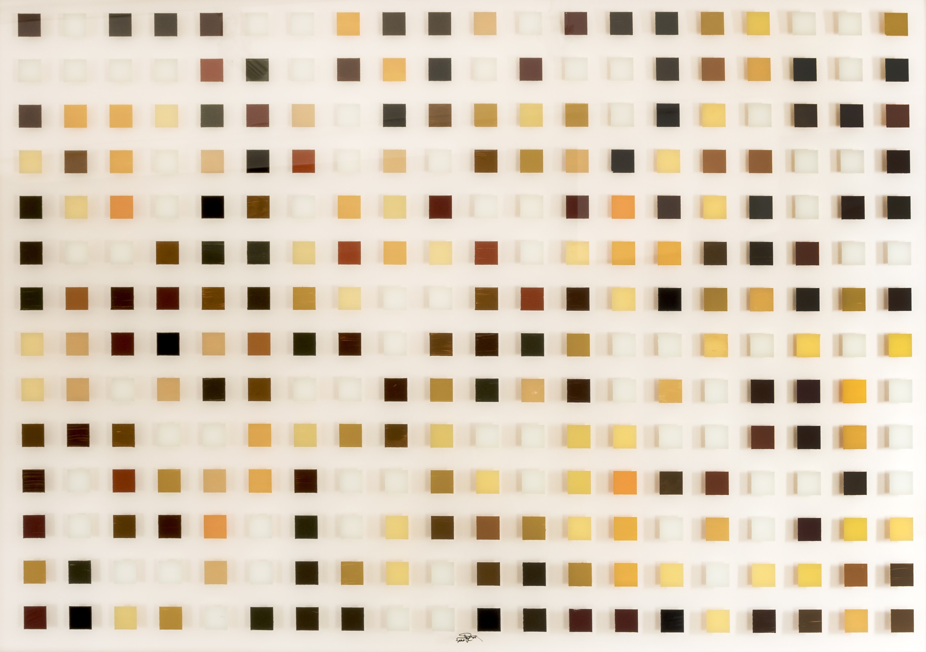 Ohne Titel (Raster), Öl hinter Glas, 88 cm x 128 cm Werkmaß, signiert, partiell leichte Kratzer