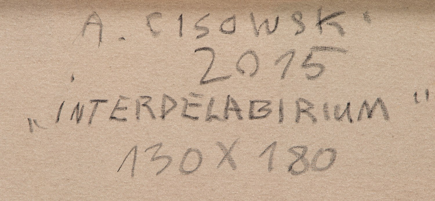 sygnowany, datowany i opisany na odwrociu: 'A.Cisowski | 2015 | "Interdelabirium" |130x180'