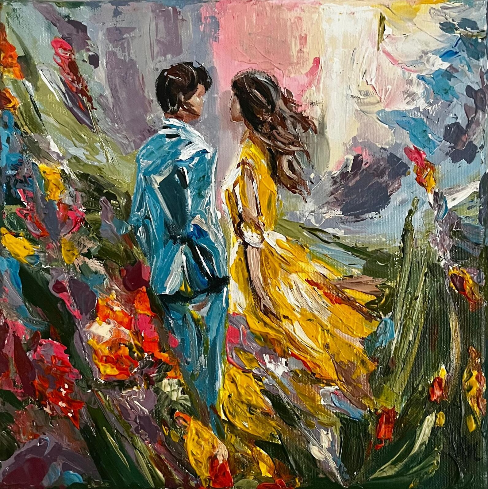 Technika mieszana olej + szpachla, 30 x 30 x 6 cm 3D