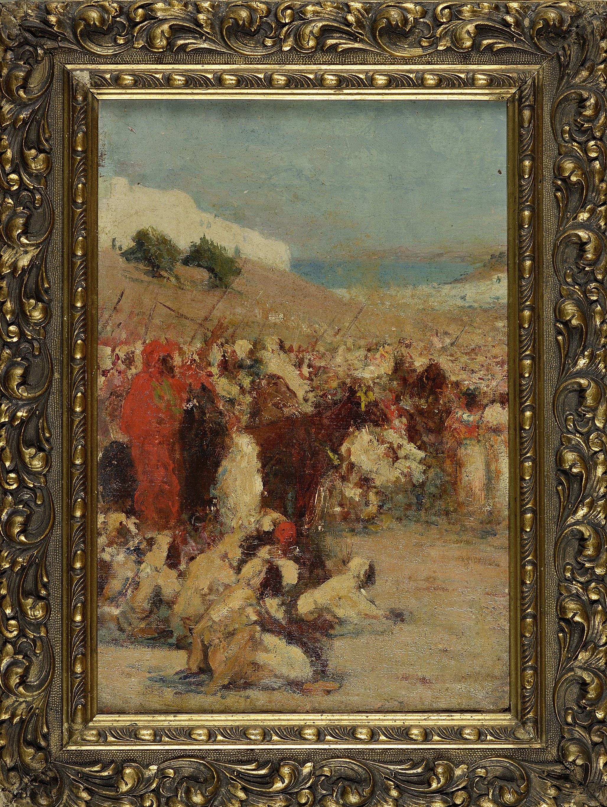 olej, płótno naklejone na tekturę (wycięte z większej kompozycji), 37 x 24,5 cm,