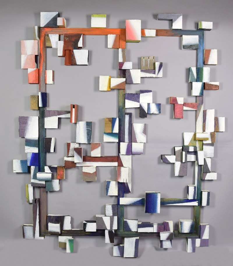 sygn., dat. i opisany na odwrocie: Bartosz Kokosiński, 2022 (Inspirowane Malewiczem) / 163,5 x 140 x 9,7 cm / olej na drewnie (flamastrem),