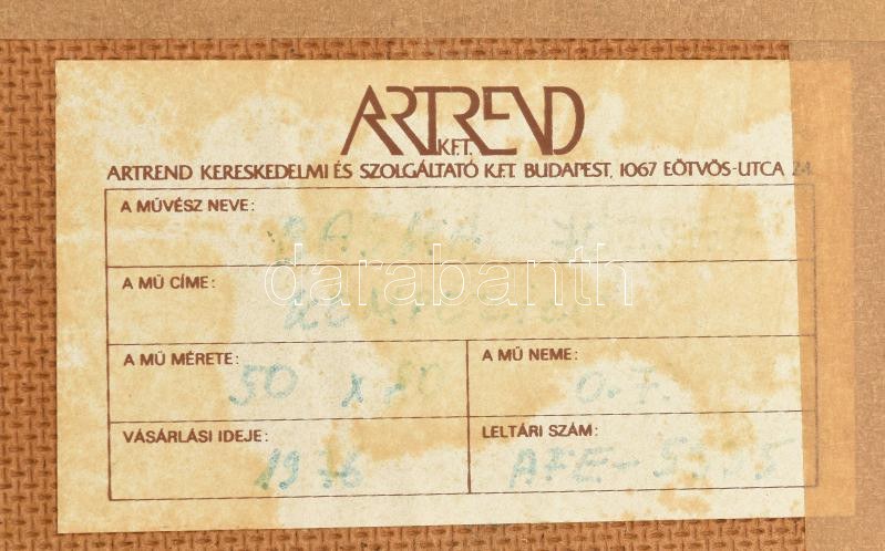 Baska József (1935-2017): Kompozíció. Olaj, farost, jelzett. Hátoldalán Képcsarnok Vállalat címkéivel. Fakeretben. 50x80 cm / oil on wood fibre, signed, framed