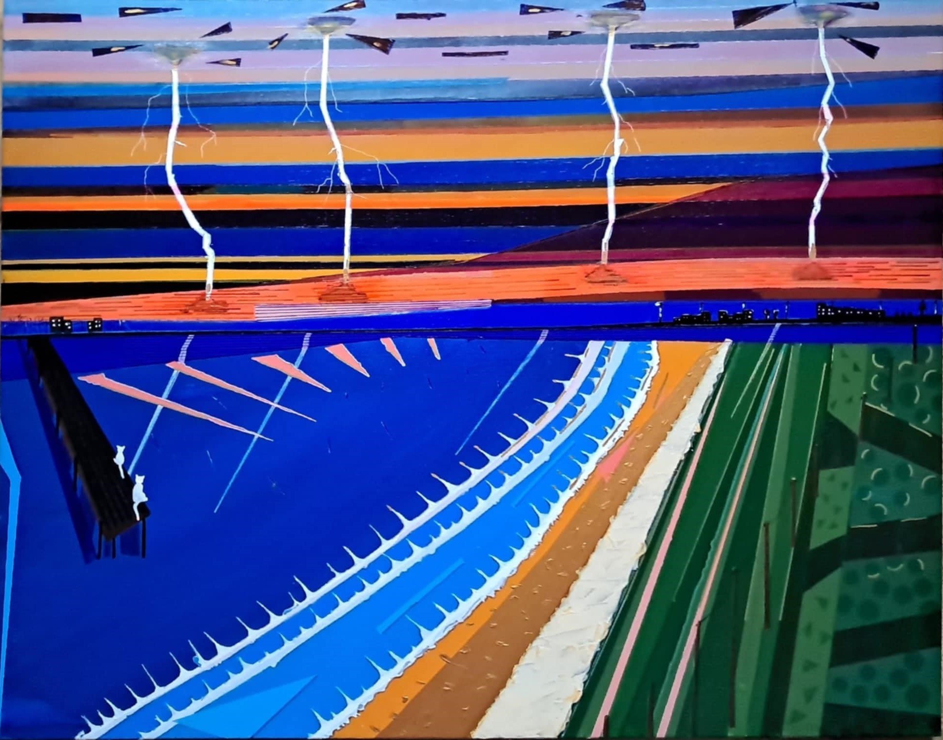 80x100, akryle i inne media na podobraziu, technika własna, zawerniksowany z połyskiem, sygnowany z tyłu, boki zamalowane, 2024