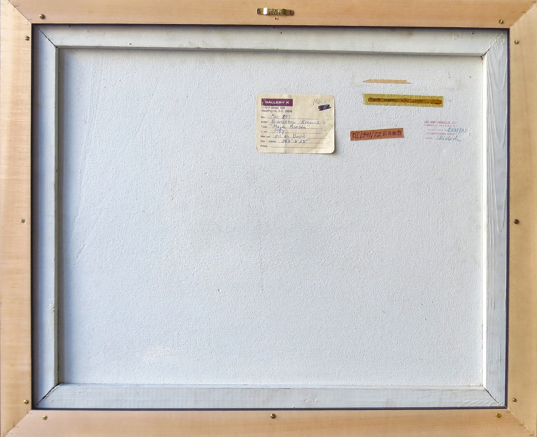 świadczenie Nr 2645/73 / nalepka wypisana na maszynie / MOJE MIASTO / 62-54, nalepka GALLERY K Washington, D.C. 20036 z opisem pracy, nalepka (plaster) DI/941/72EBEB.