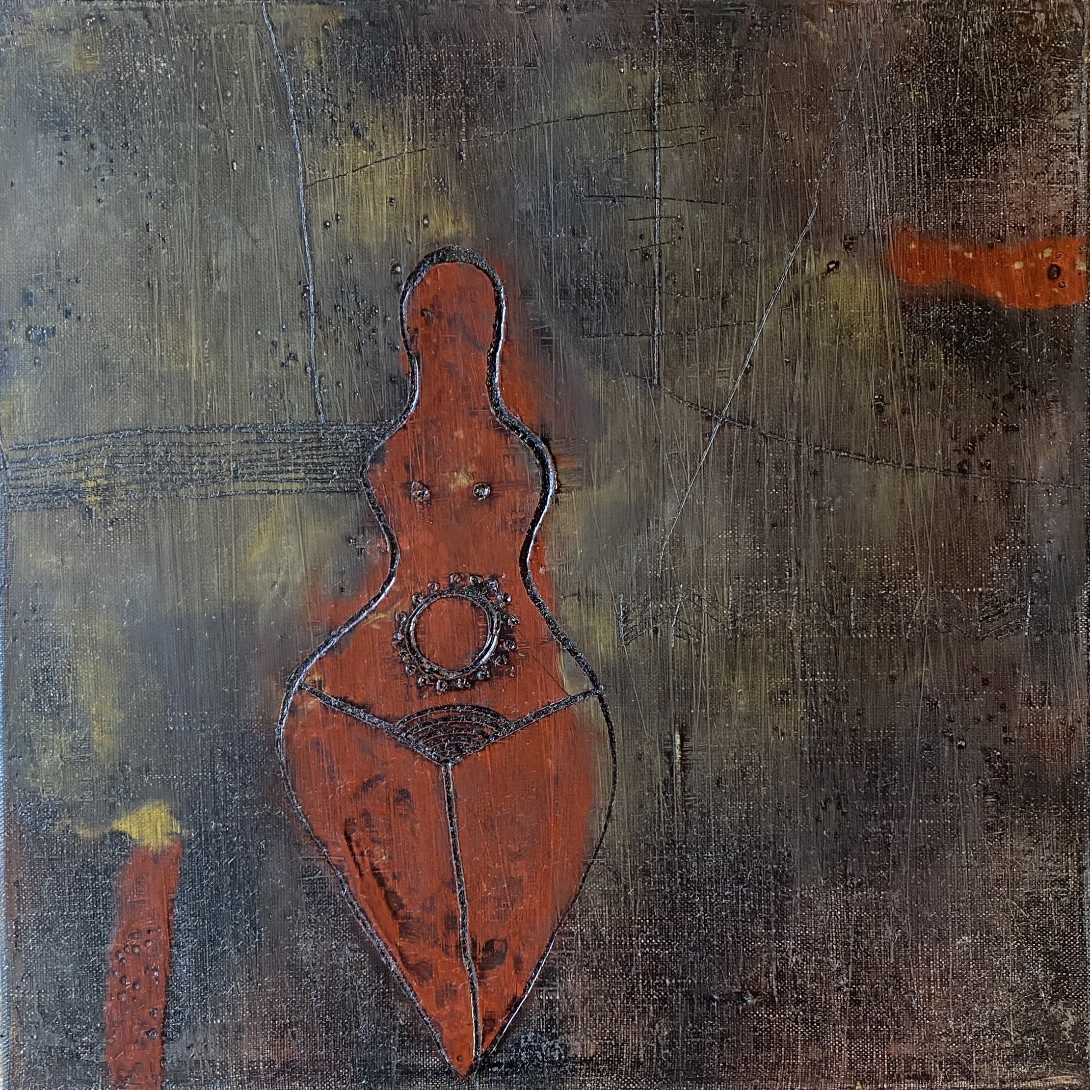eukaustyka,płótno, 35x35cm,sygn.i opisany z tyłu obrazu