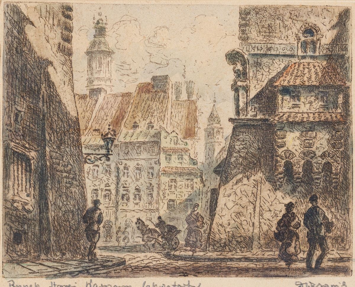 Akwaforta kolorowana akwarelą, papier; 12 x 15,5 cm (w świetle p-p)