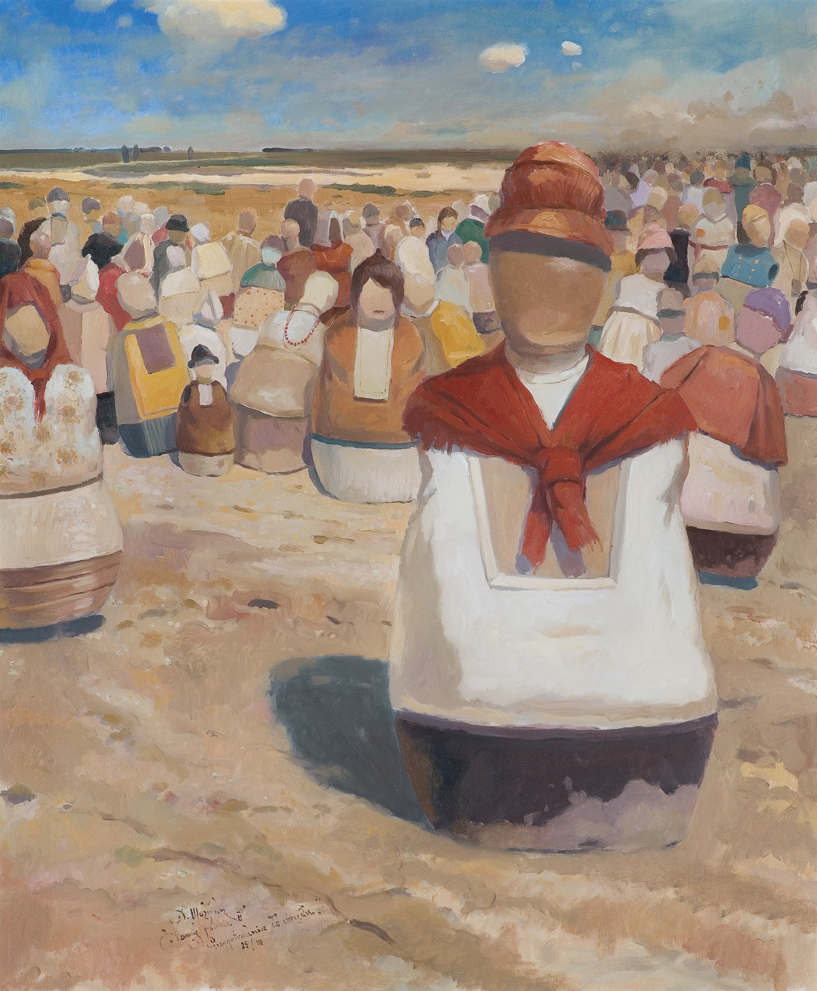 120,0 x 100,0cm - olej, płótno sygn. l.d.: D. Woźniak | „Damy polskie II | Przygotowania do obrzędu.“ | 25 III