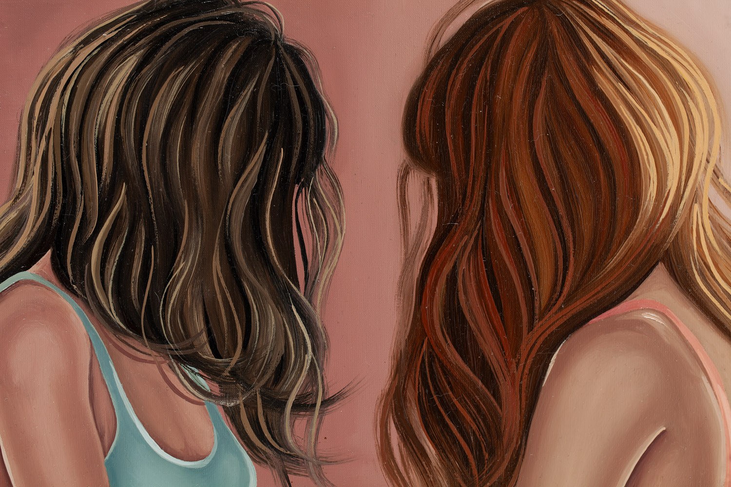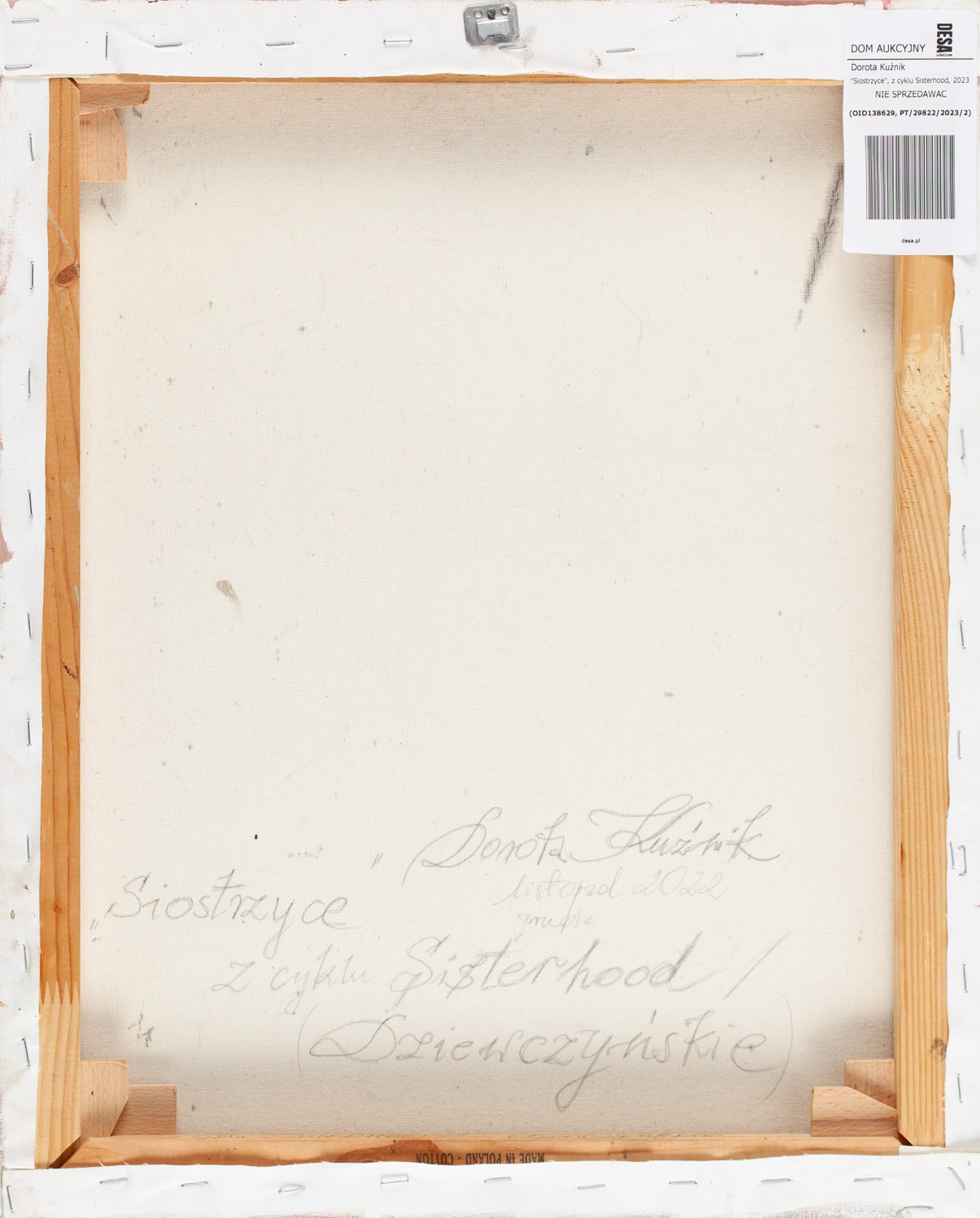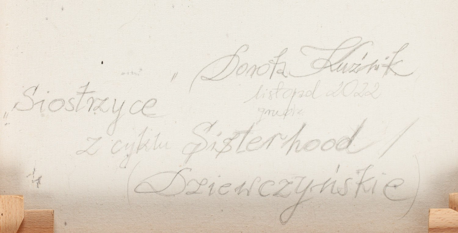 sygnowany, datowany i opisany na odwrociu: 'Dorota Kuźnik | listopad 2022 | "Siostrzyce" | z cyklu Sisterhood | (Dziewczyńskie)'