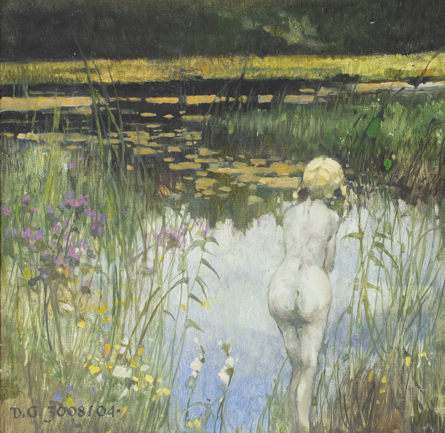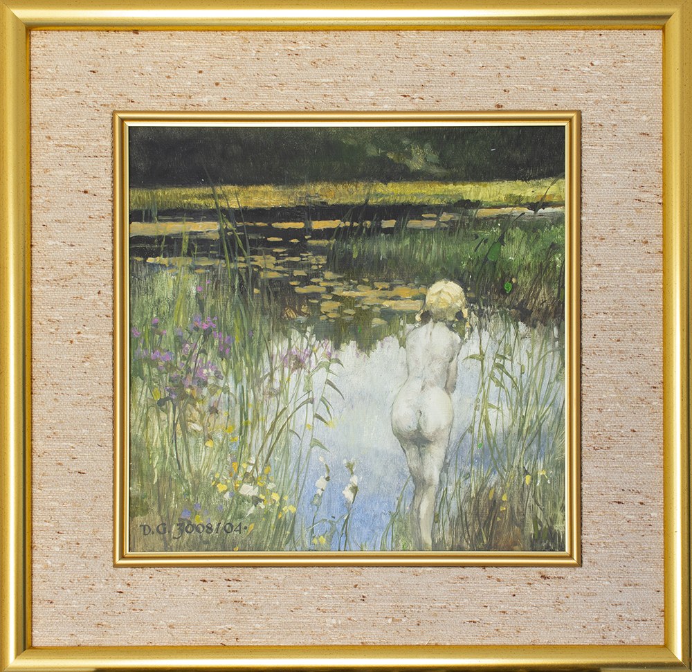 olej na płycie, 43 x 42 cm, opr. 66 x 66 cm, sygn. l.d 'DG 3008/04', etykieta autorska na odwrociu