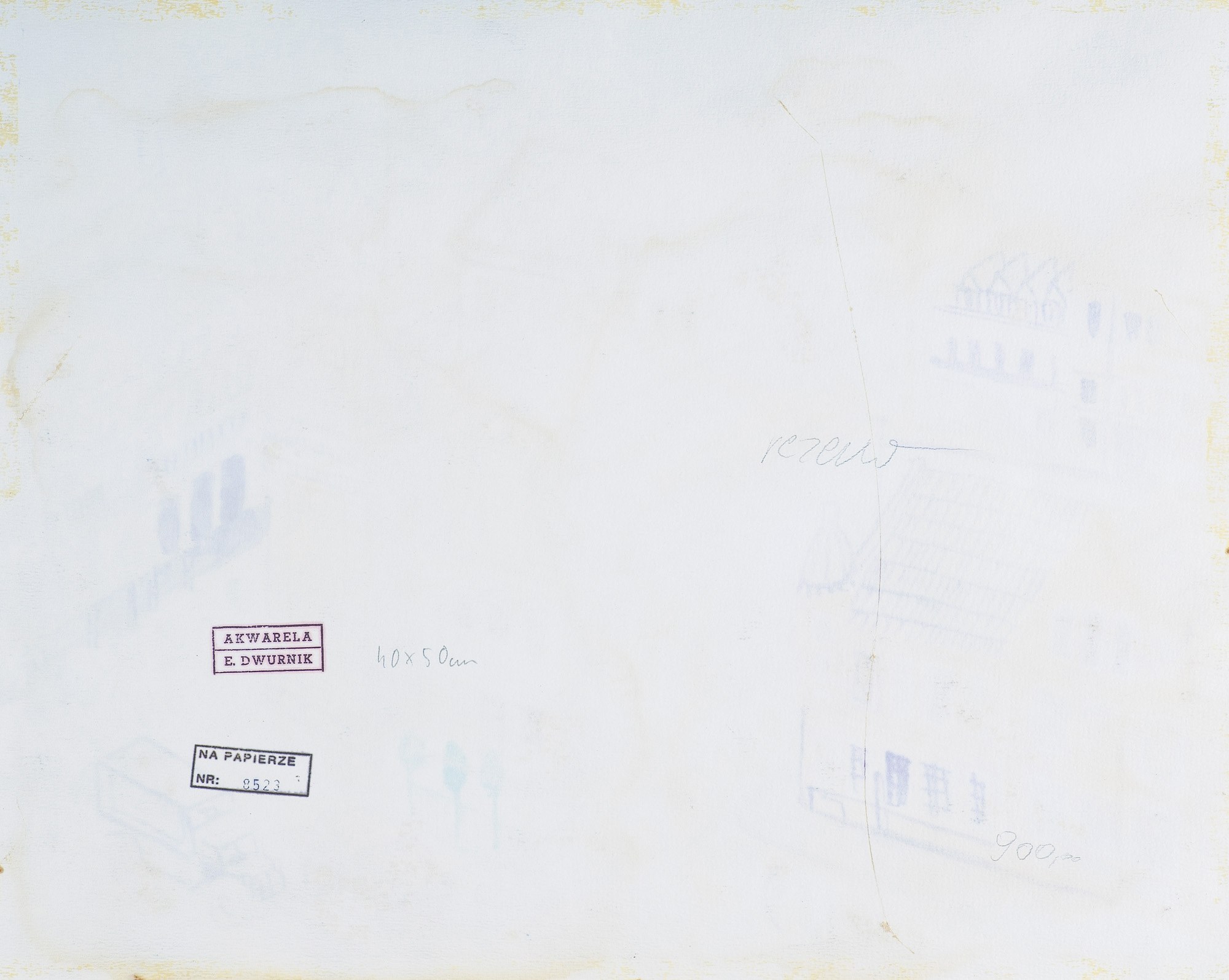 – NA PAPIERZE | NR: [piecz. numerator:] 8523; po prawej napis oł.: rezerw, w p.d. rogu: 900,-