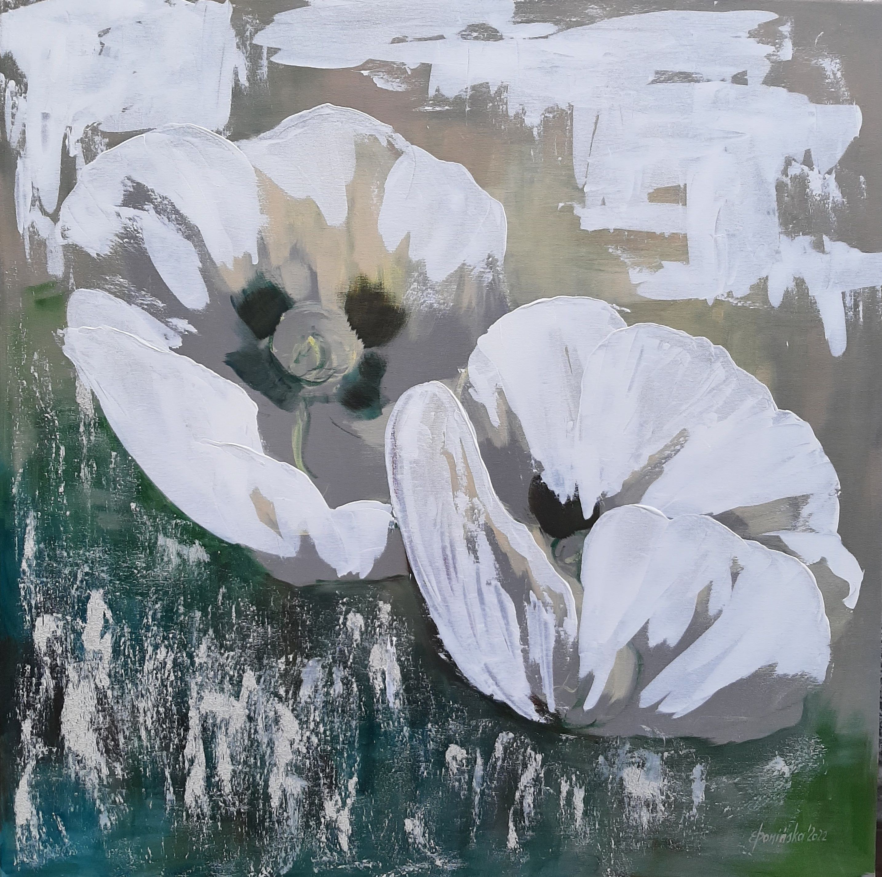 Akryl na płónie, wymiary: 80 x 80 cm, sygn.pdr E Ponińska 2021