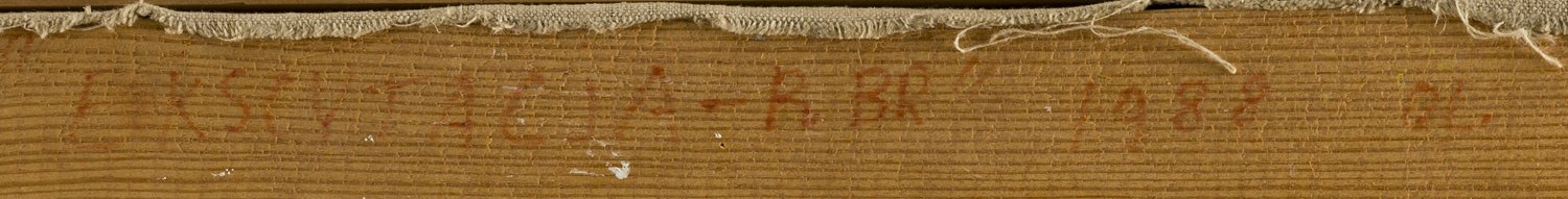 datowany i opisany na blejtramie: '"EKSCYTACJA - R-BR" 1988 | 170 x 130'