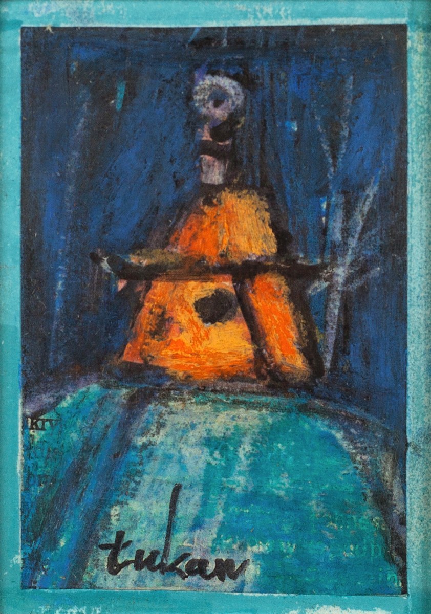 technika mieszana, papier; 7,4 x 5,1 cm (w św. passe-partout);